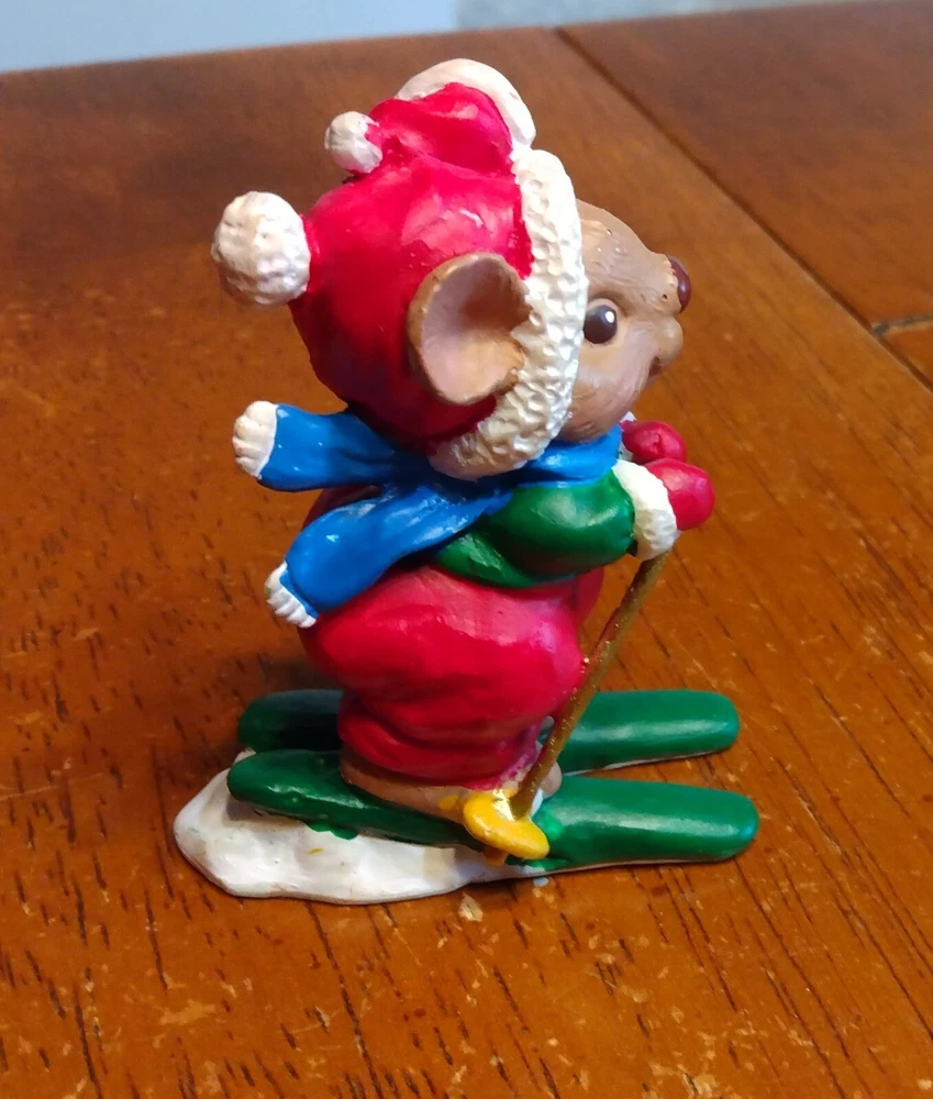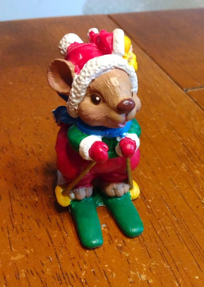 Vintage Russ Berrie 9001 Mouse on Skis Figurine. Good condition. Approximately 2 3/4" tall.