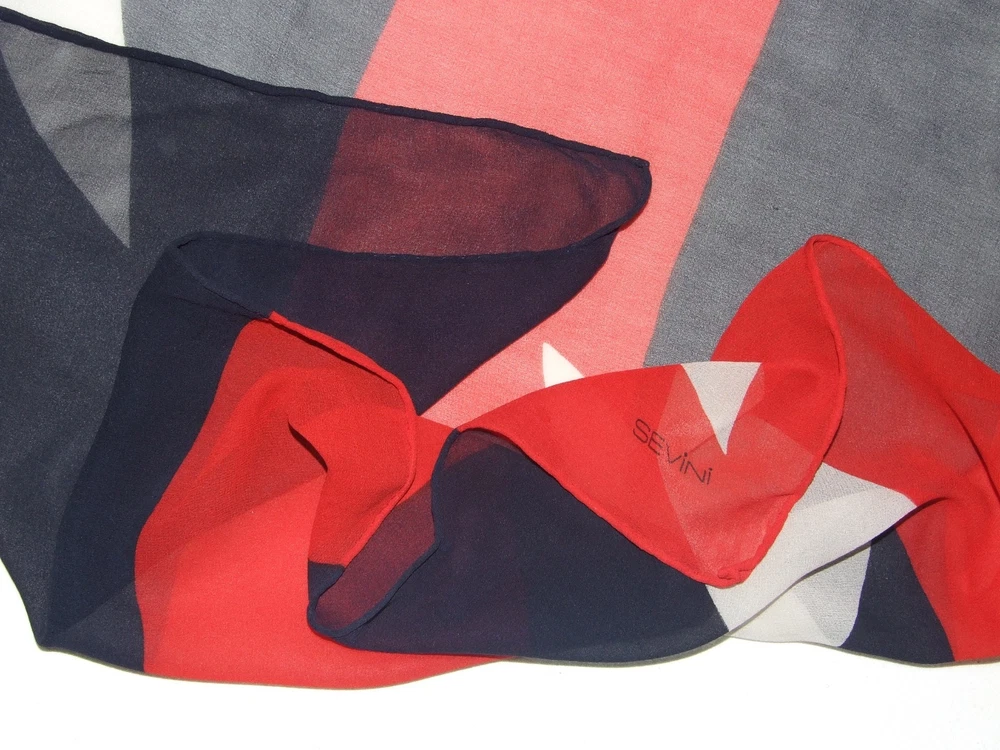Vintage SEVINI Abstract GEOMETRIC Red Blue White Chiffon Silk 28" Delicate Scarf Stylish accessory for the season! Delicate designer silk scarf in geometric design by Marco Sevini . Hand Rolled Main Colors: Blue, Red and White Approx. Size: 26 1/2" x 28" Content: Pure Silk, Delicate Chiffon Marked Sevini, Removed Tags Excellent Vintage Condition : no damage, odor, stain or discoloration. We accept only PayPal within 3 days! Please be sure that your shipping address is confirmed by PayPal. We will whip your item by International Priority Mail. We would be happy to combine shipping, the final shipping cost depends on weight, the extra shipping price is 1.5$ for each additional scarf. The return is free in case of not as described item and is shared if the buyer simply change hers/his mind. Our items have been previously owned, they may not be perfect. If there are any major flaws they are mentioned in the description above. All of our items are cleaned and come from a pet free and smoke free house. Please take a moment to browse our listed items; we have a variety of scarves in different styles, colors and designers. We have a 1 business day handling time. Five stars positive feedback is highly appreciated. In case you are not satisfied please contact us before leaving feedback to solve the problem. Thank you for looking & bidding! Track Page Views With Auctiva's FREE Counter
