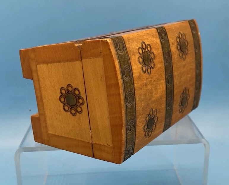 $ 13.14VTG Boho Handmade Acacia Wood Trinket Box with Brass Inlay 7" Lidded Storage