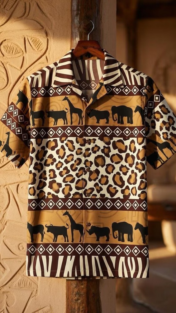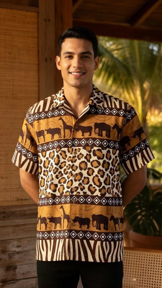 Wildlife Safari Animal Print Hawaii Shirt Tropical Beach Vacation Men's