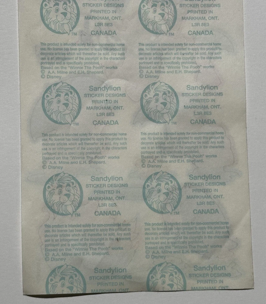 This sticker sheet from the vintage Disney and Sandylion collaboration features Winnie the Pooh and friends having fun in the rain. These adorable and vibrant stickers will make a great addition to any vintage sticker collection, Winnie the Pooh fan, and/or crafter! The sticker sheet is in great, vintage condition with normal signs of wear from handle and time. Please review all of the pictures and ask any questions as this is sold as is. Thank you for your time! :)