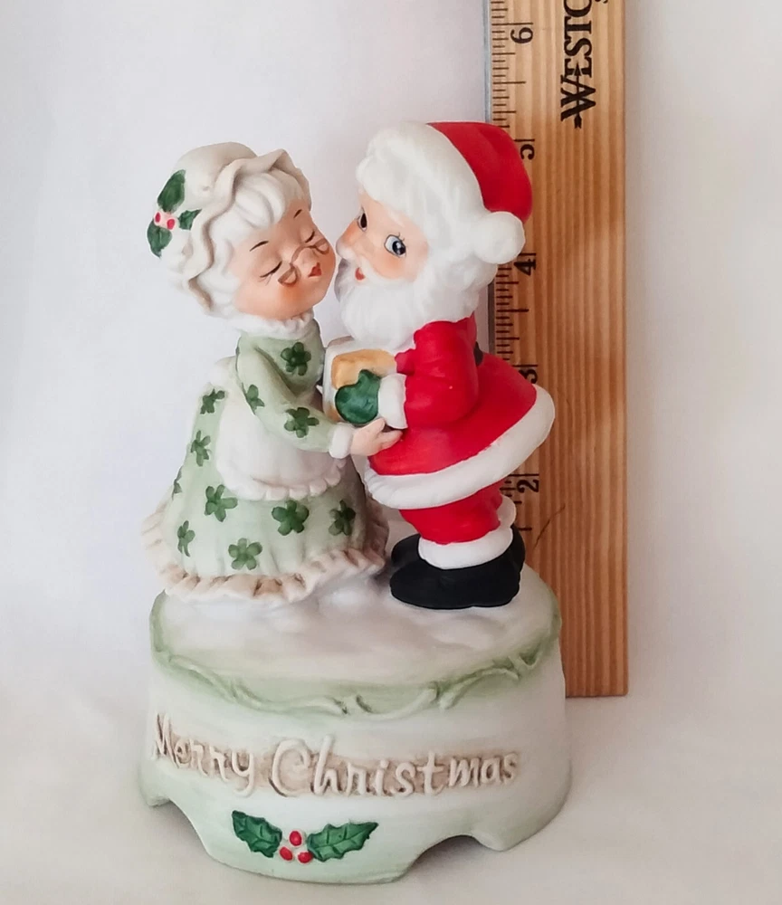Elevate your festive decor with the charm of yesteryear with this Vintage "Merry Christmas" Santa and Mrs. Claus Dancing Wind Up Music Box. Crafted from high-quality ceramic porcelain, this medium-sized figurine features a delightful dancing scene with a classic matte finish, bringing a touch of nostalgia to your holiday celebrations.The piece is beautifully presented in a red, green, and white color scheme that captures the spirit of Christmas. As a single wind-up music box, it not only serves as a decorative piece but also plays a melodic tune to add an auditory layer to your seasonal decorations. Proudly made in Taiwan, this unbranded collectible is sure to be a conversation starter and a cherished addition to your Christmas tradition.