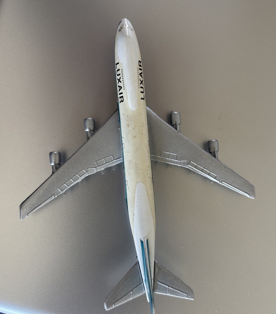 The product is a Schabak 903/17 LUXAIR Airbus A300 B diecast model in 1:600 scale. This model is part of the Commercial Aircraft theme and features the Luxair airplane character family. Made of diecast material, this vintage collectible is a detailed representation of an Airbus Boing 747 aircraft.
