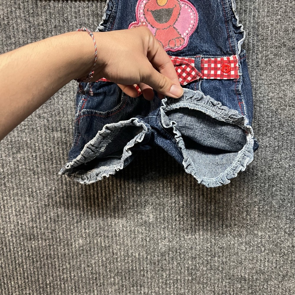 These vintage Sesame Street Elmo kids denim overalls in size 3T are a cute 90s baby item that will surely bring a nostalgic feel to any toddler's wardrobe. The overall design, embroidered accents, and classic blue color all add to the charm of these one-piece overalls. Perfect for a little one who loves the iconic characters from Sesame Street, these overalls are a playful and retro addition to any outfit.