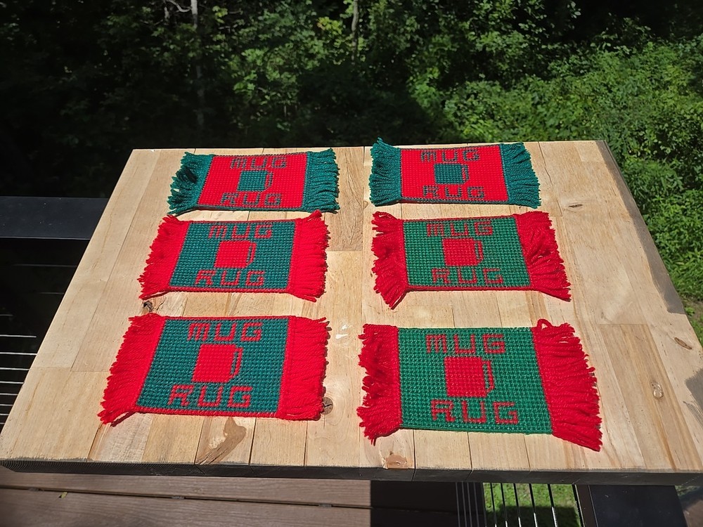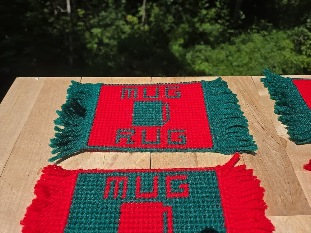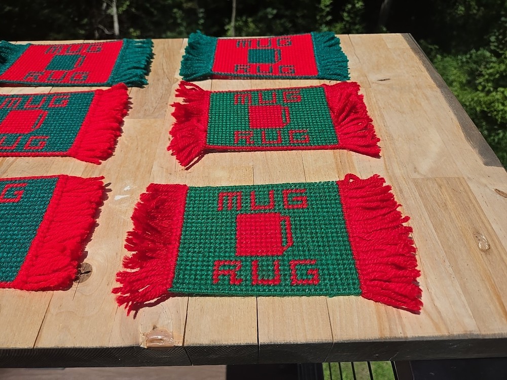 This vintage set of 6 handmade needlepoint mug rugs coasters features a cream and brown color scheme, perfect for adding a touch of rustic charm to your kitchen or dining area. Crafted from plastic and acrylic materials, these square-shaped coasters are designed to protect your surfaces from heat and moisture while adding a unique handmade touch to your decor. Made in the United States, these coasters should be hand washed only to maintain their quality and appearance. Perfect for adding a touch of vintage flair to your home, these needlepoint coasters are a functional and stylish addition to any space.