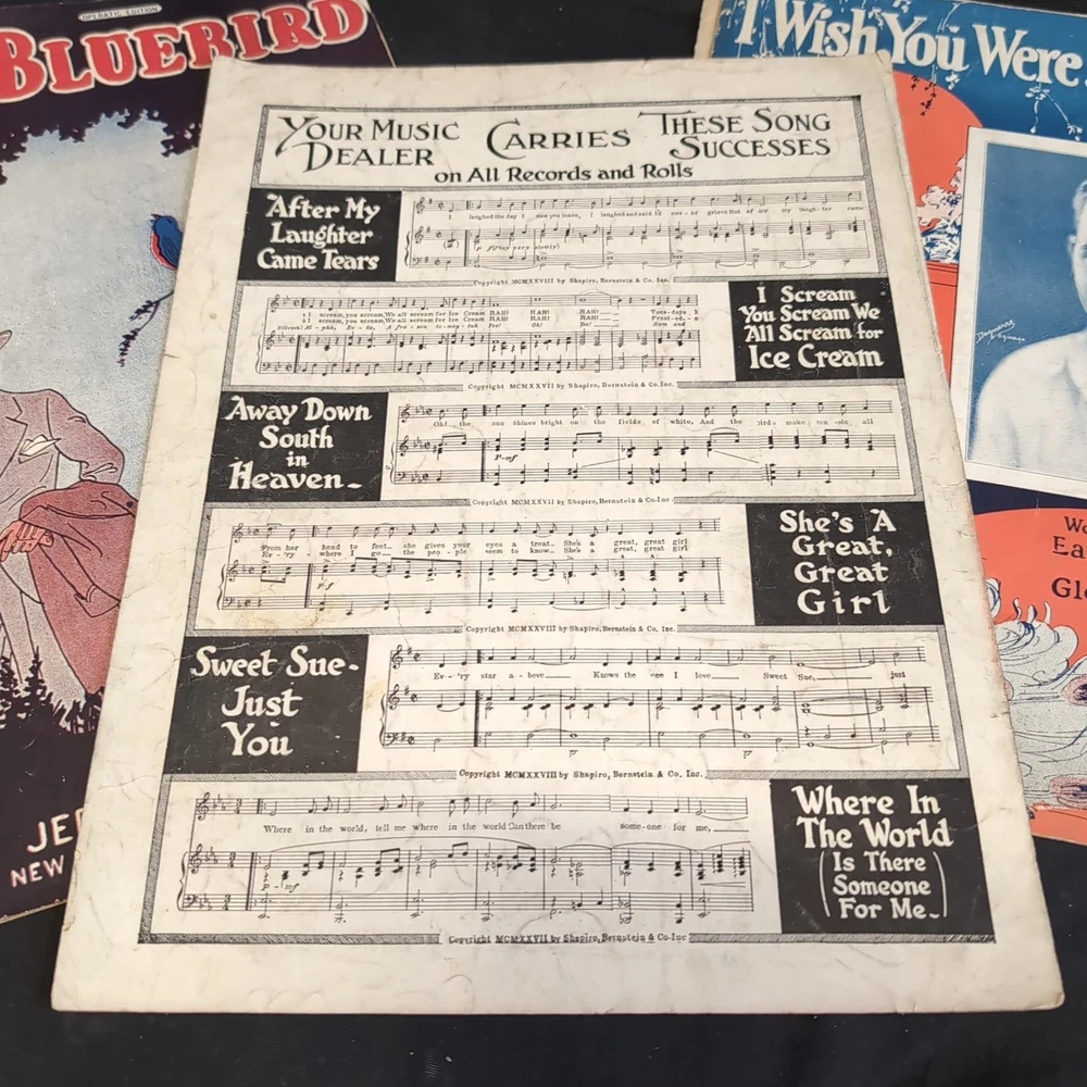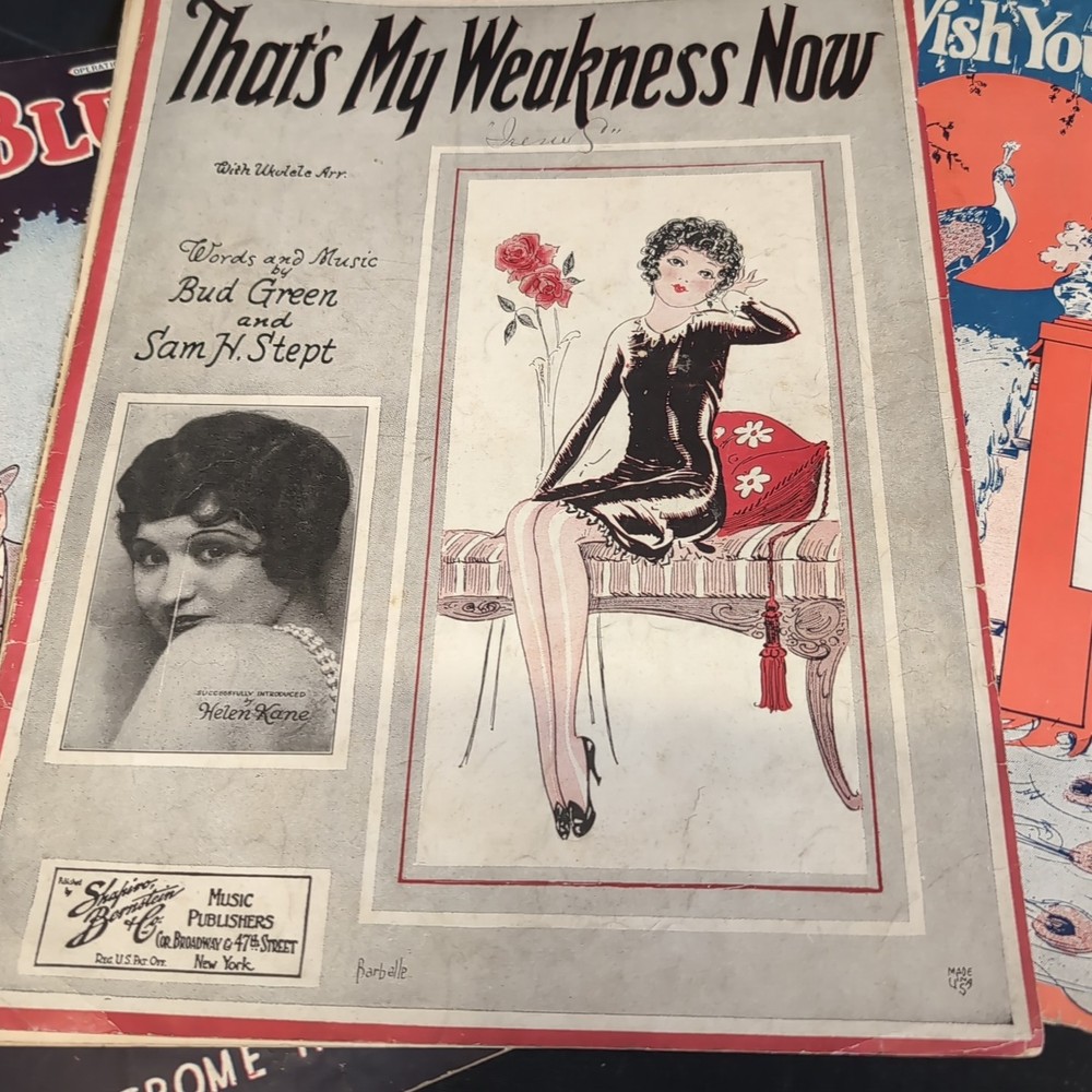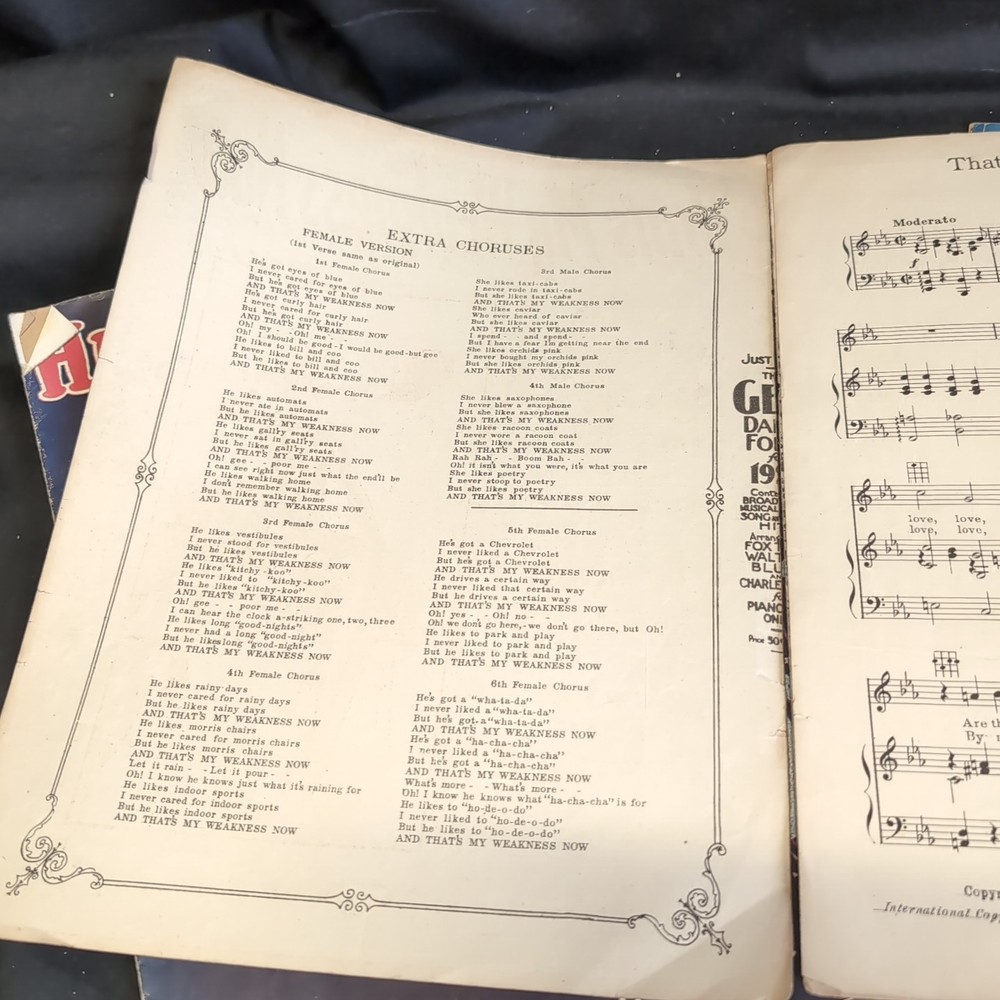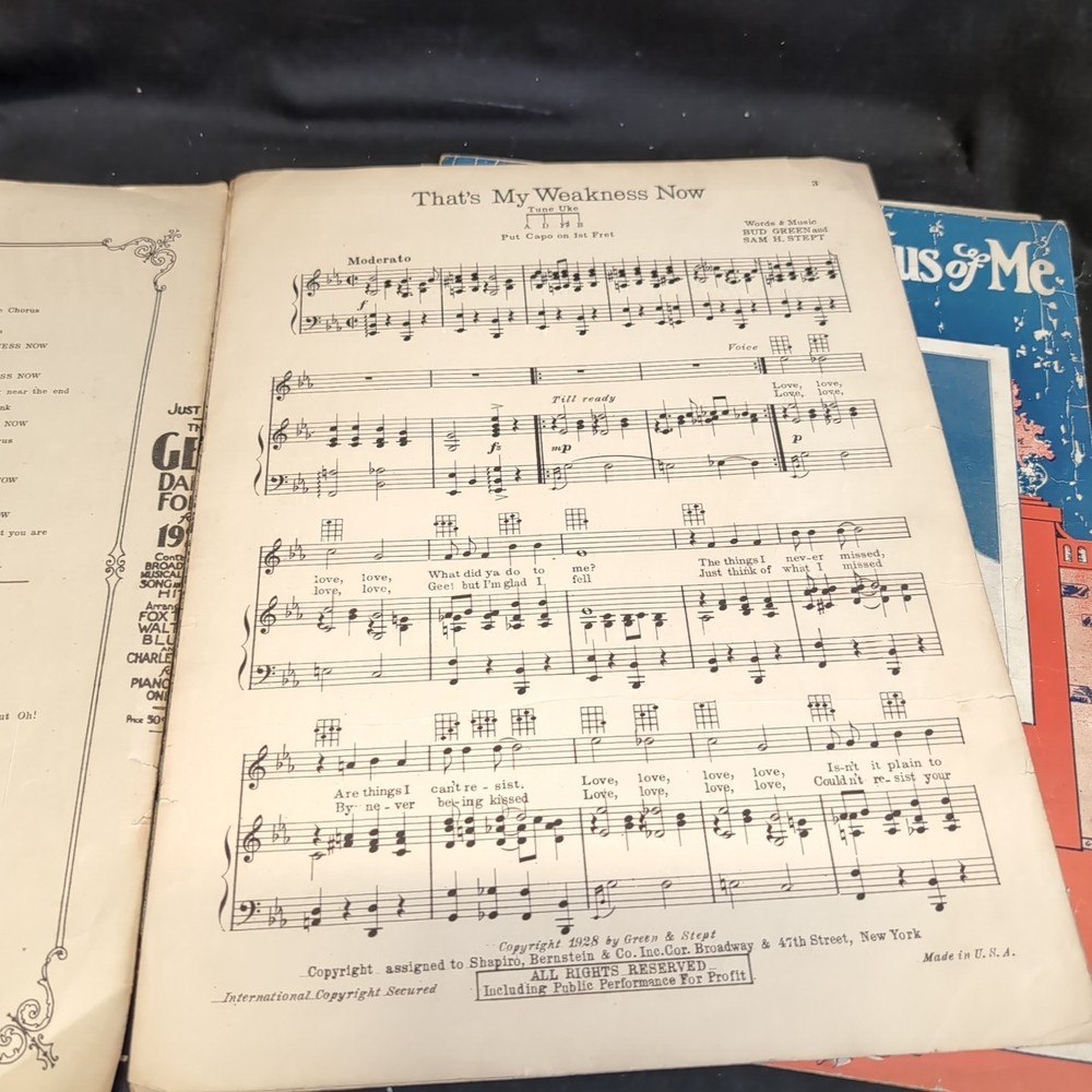 Please look at all the photos.Delve into the charm of the 1920s with this authentic Vintage Sheet Music piece, "That's My Weakness Now," accompanied by "Wish You Were Jealous of Me." A timeless treasure for musical enthusiasts and collectors, this sheet music format offers a glimpse into the era's musical theater and classic tunes. Perfect for those who appreciate the nostalgia and craftsmanship of bygone days, this item finds its place in a collection ofMusicals genre. Whether for performance, study, or display, it serves as a rich cultural artifact that captures the essence of historical music expression.