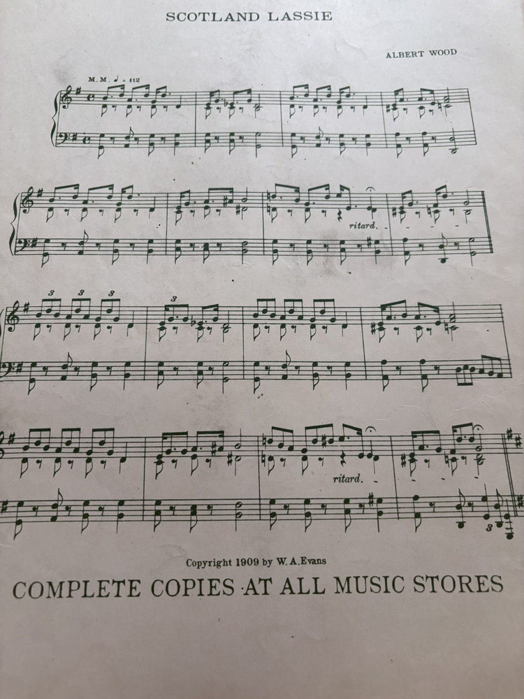 The product is vintage sheet music for the Ivy Leaf Schottische by WF Miller Evans, dating back to 1902. The sheet music falls under the genre of Musicals and provides musicians with the opportunity to play this specific piece of music from the past. With its historical significance and unique charm, this product appeals to collectors and music enthusiasts looking to revisit or experience classic musical compositions. ALSO HAS SCOTTLAND LASSIE BY ALBERT WOOD