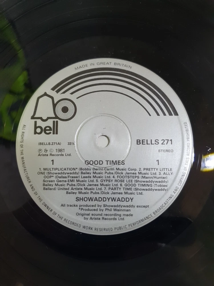 This vintage Showaddywaddy "Good Times" vinyl LP album is a must-have for any occasion. The 1981 release from Bell records features 12" black vinyl with a cardboard sleeve case type. The record grading is Excellent (EX) and the sleeve grading is Good (G), ensuring great sound quality and a well-preserved cover. Footsteps Multiplication And many more..... This first edition LP is a true gem for fans of 1980s pop and rock 'n' roll music. The vinyl is speeded at 33 RPM and includes original inner sleeve and cover. The record label is Bell and the release year is 1981. The album is a great addition to any music collection and a perfect choice for a nostalgic trip back to the 1980s.