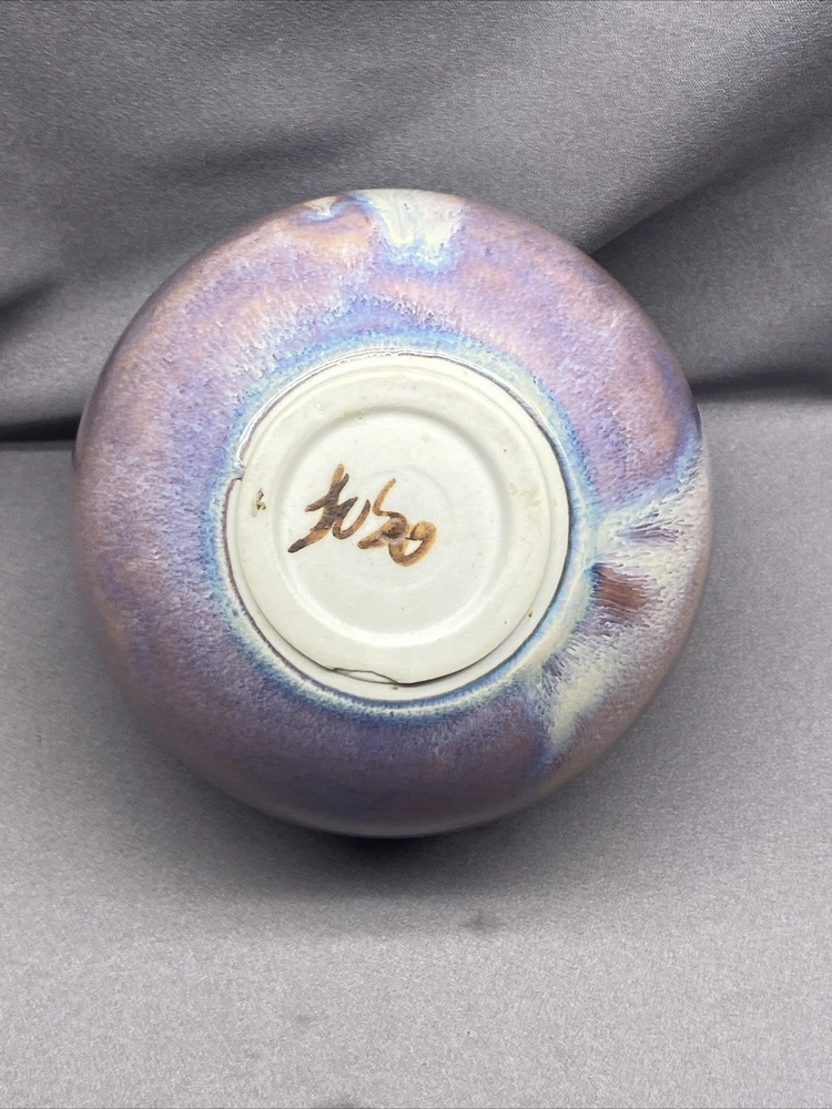 Discover the unique artistry of the handcrafted James Loso pottery vase, a true vintage gem that brings a touch of iridescence to any space. With its multicolored palette and textured finish, this vase stands out as a testament to Loso's distinctive art pottery style, making it a prized addition to any collection or decor. Each detail of this piece reflects the skilled production techniques employed by Loso, renowned for his exceptional pottery work. The vase's intricate design and vibrant hues are sure to captivate and add an air of sophistication to your home or office. Enjoy the timeless elegance and artisanal charm of this signed James Loso creation. It measures approximately 5 1/2" tall & 5 1/2" in diameter. No chips or cracks. Excellent condition. See photos.