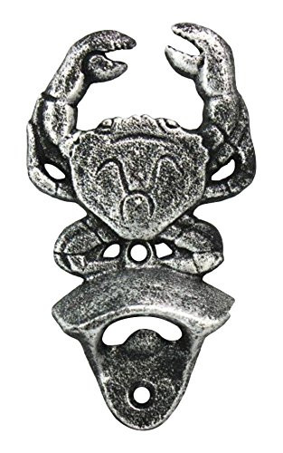 The antique silver cast iron wall mounted crab bottle opener 6 inch perfectly accents any nautical themed kitchen or bar. Crafted from cast iron rustic finish, this heavy bottle opener will open even the most difficult of bottles with ease. NOTE: This classic "European Style" wall mounted bottle opener has a sleeker design which emphasizes the anchor design element. The bottle opening is slightly smaller than a typical "American Style" bottle opener. As such, to remove the bottle cap, you insert the bottle and move it in a downward direction. Please pay attention while opening the bottle or some liquid could potentially spill. Nautical and decorative display perfect for the true nautical enthusiast Cast iron bottle opener opens bottles with ease Excellent cast iron home accessory and decoration for all products over 3000 unique nautical items available Buy Factory direct all items designed and manufactured by us