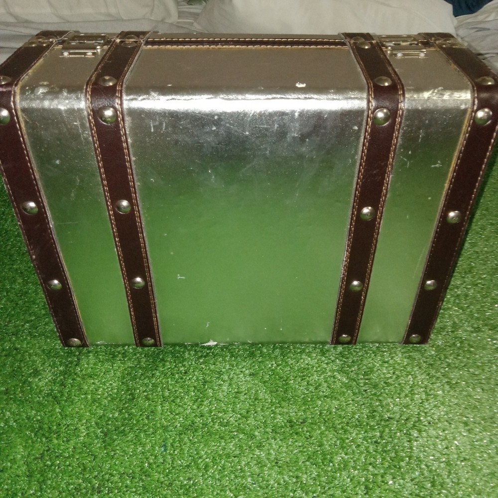 This beautiful trinket box is perfect for keeping your jewelry and other small items safe and secure. With a silver plate finish, this box is sure to impress. It's the perfect size for a small briefcase or suitcase trunk, making it a great choice for travel. The box features a unique design, with a rectangular shape and a 1950s style. The Godinger brand is known for producing high-quality keepsake boxes, and this one is no exception. This collectible box was manufactured in the 1990s, making it a great addition to any decorative collectible collection. It's perfect for adults and girls alike, and it's sure to be a conversation starter. The box is 4.5 inches in length, 2.5 inches in width, and 1.75 inches in height, making it a compact and convenient option. It weighs 13oz, making it easy to carry. This Keepsake Box is a must-have for anyone who loves travel and wants to keep their jewelry safe and secure.