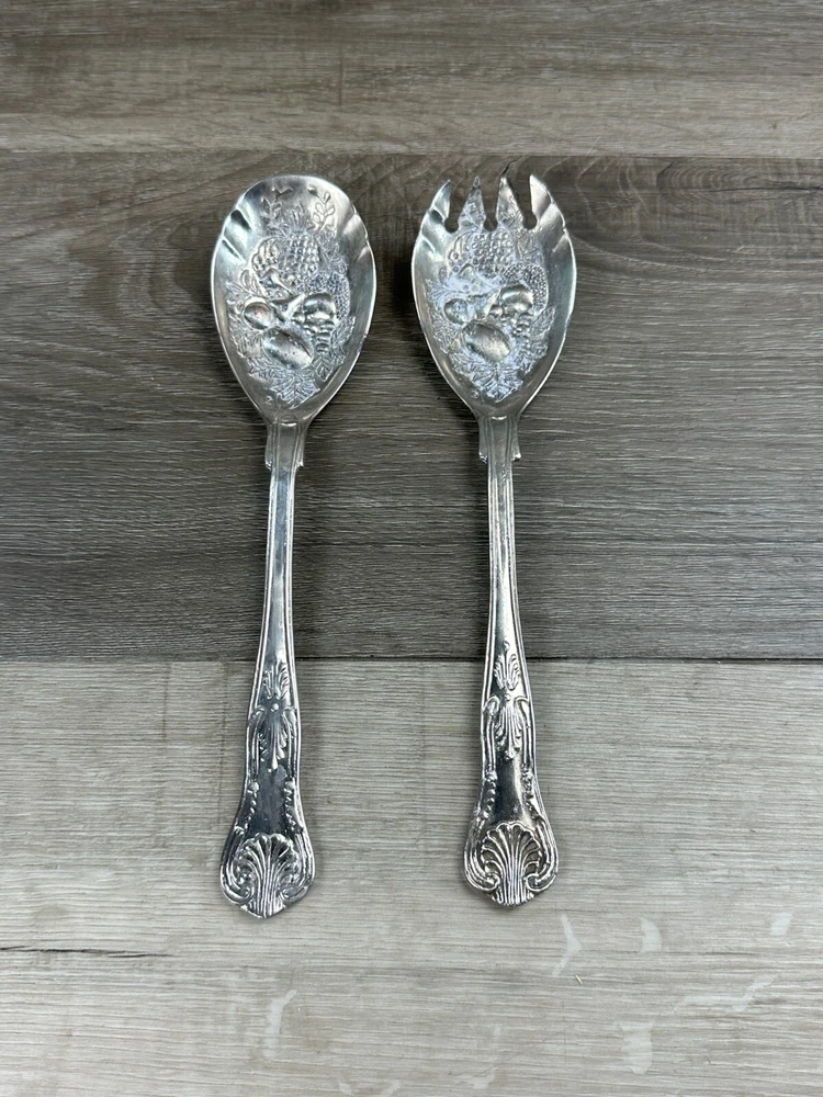 Vintage Silver Plated Salad Servers Spoon Fork Fruit Pineapple Leaves Hong Kong Product Details: Condition: Pre-Owned in Good Condition (See Pictures for Reference and Size) Stored in a Non Smoking Home Shipping: I ship daily Monday thru Friday so expect a quick delivery Ships from California, USA Fast Shipping Contact us for any custom orders "All items pictured are included. Please take another look at pictures to view what you are purchasing." Thank you for checking out our listing. Please visit my eBay store to find harder to find, and unique items. To View More Items from our Store, Click our Direct Link to our eBay Store Below: ENJ ECommerce eBay Store