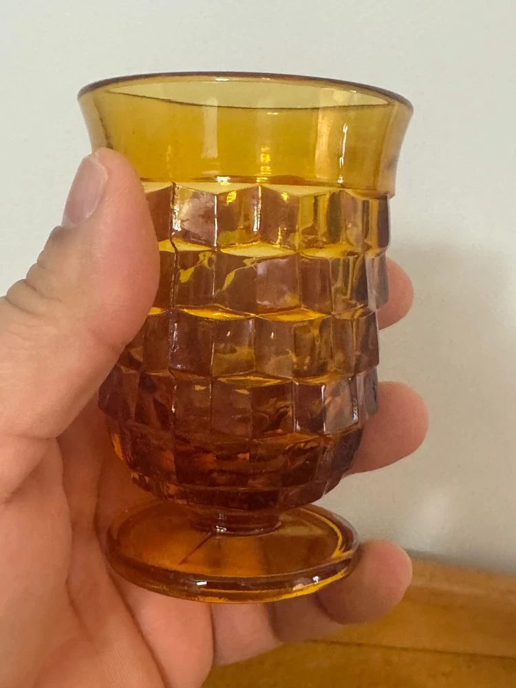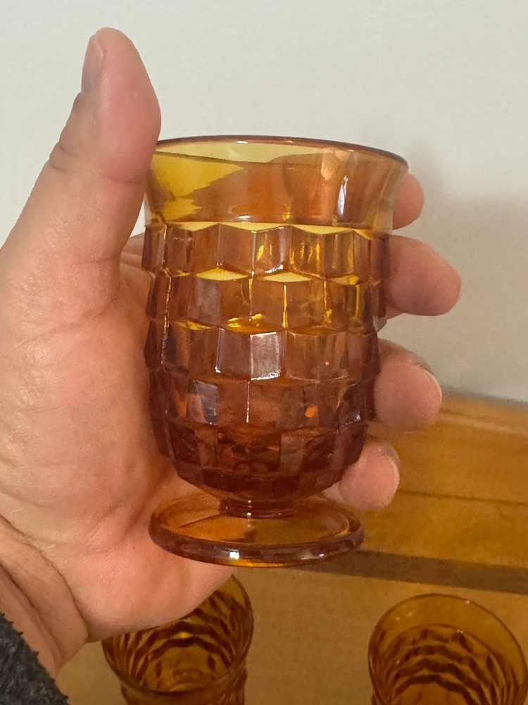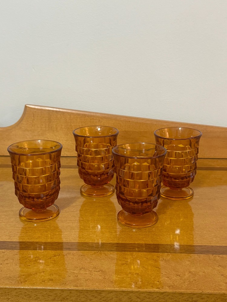 Discover a stunning set of 4 Vintage Small Amber Indiana Glass Whitehall Footed Tumblers that will elevate any gathering. These exquisite glasses not only showcase beautiful craftsmanship but also add a touch of elegance to your table. Perfect for entertaining or as a unique gift! CONDITION: Pre-owned and in good condition. See the attached photos. Color: Amber Materials: Glass Measurements: 3.75 in. H x 2.75 in. W x 2.75 in D, approximately "All our items are sold as is." We are committed to providing you with the best customer experience and affordable prices. Thank you for supporting our small business and for contributing to a cleaner world.