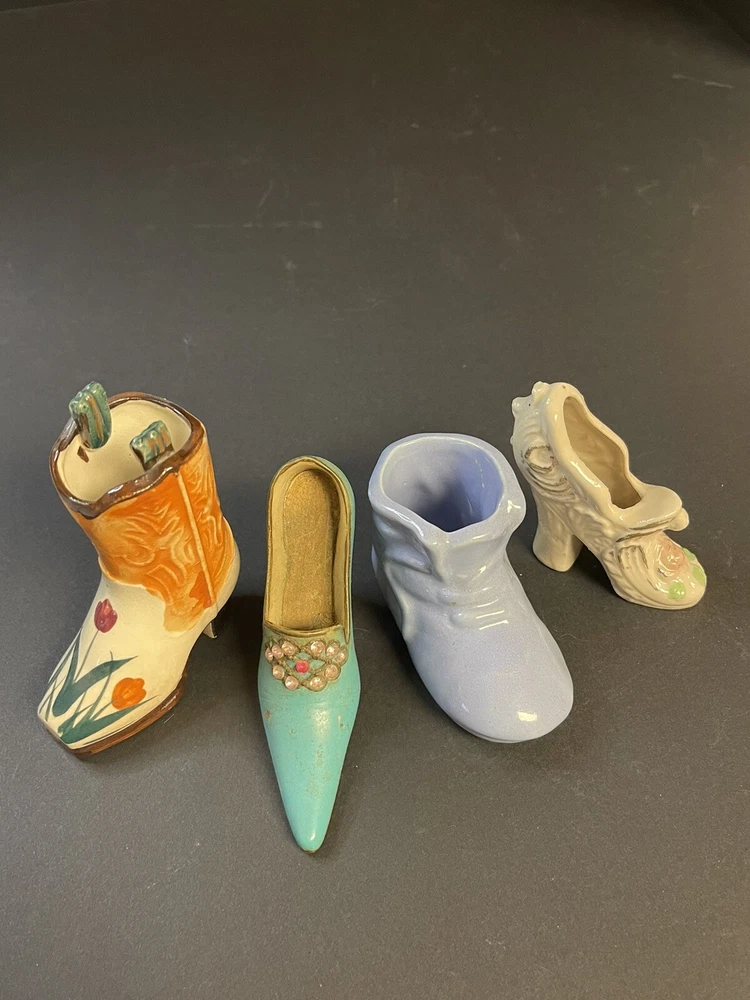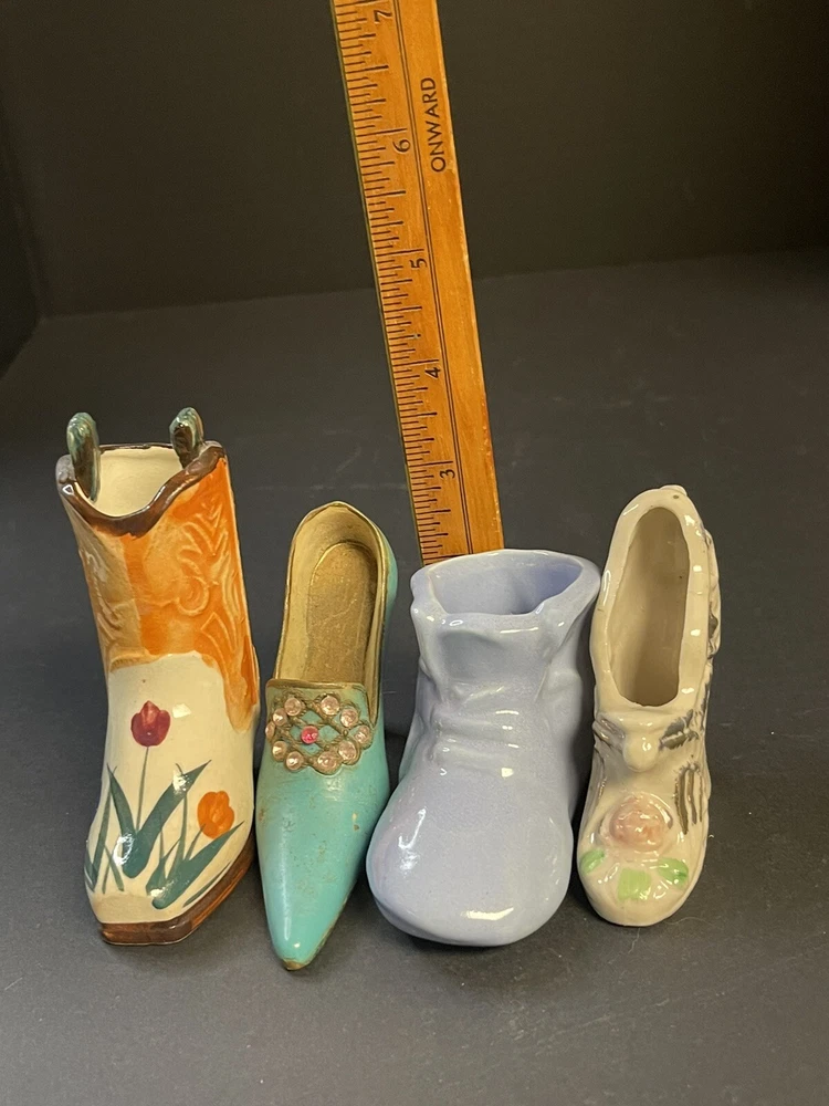Add a touch of Victorian charm to your collection with these small ceramic and metal miniature shoes or boots. These collectibles feature a mixed material construction, with glossy finishes that lend them a classic aesthetic. Perfect for all occasions, these novelty shoes or boots are ideal for teens, boys, girls, adults, and unisex baby and toddlers. One Boot is marked OCC Japan. This miniature shoe or boot collectible comes unboxed and is an original product from mid 20th century China. These shoes or boots are not customized and are not signed. The design features a beautiful Victoria pattern and is a part of the Classic Collection. Adorned with multicolor and made of mixed materials, ceramic, and metal, these figurines are a must-have for any decorative collectibles or sculptures & figurines enthusiast. Please view pictures as they are part of the description, and certainly feel free to ask questions. All items carefully packaged and processed within two business day upon receipt of payment excluding holidays and weekends. T hank you for looking. This item is from a smoke free home. Please view all the photos. Check out all my other items. We ship in the US only.