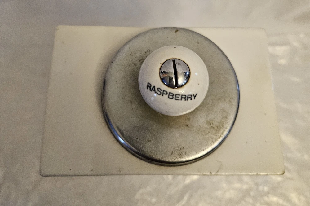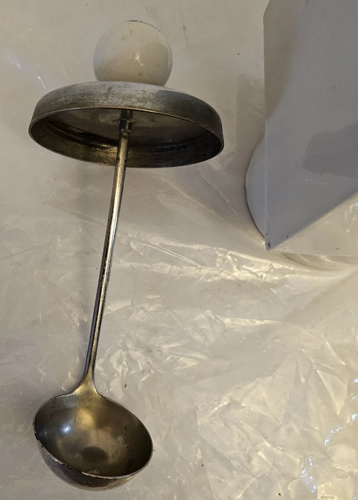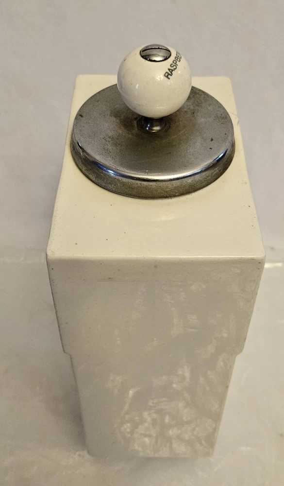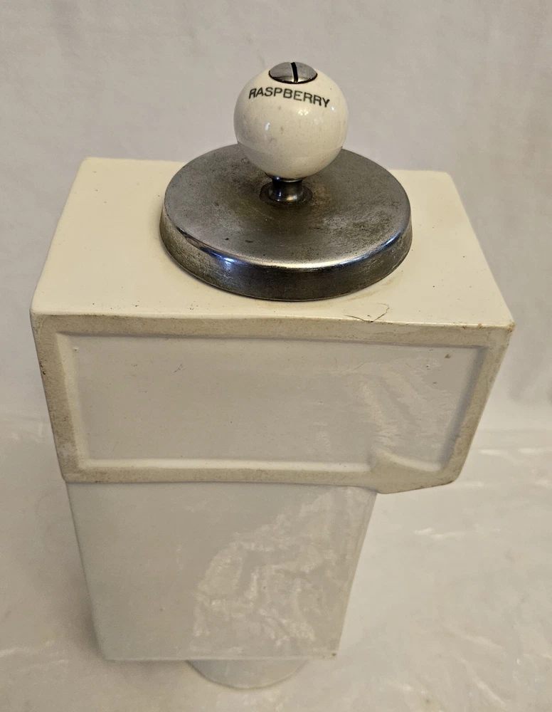 Vintage Soda Fountain Syrup Dispenser Porcelain Canister With Ladle Rasberry **There are no cracks or chips