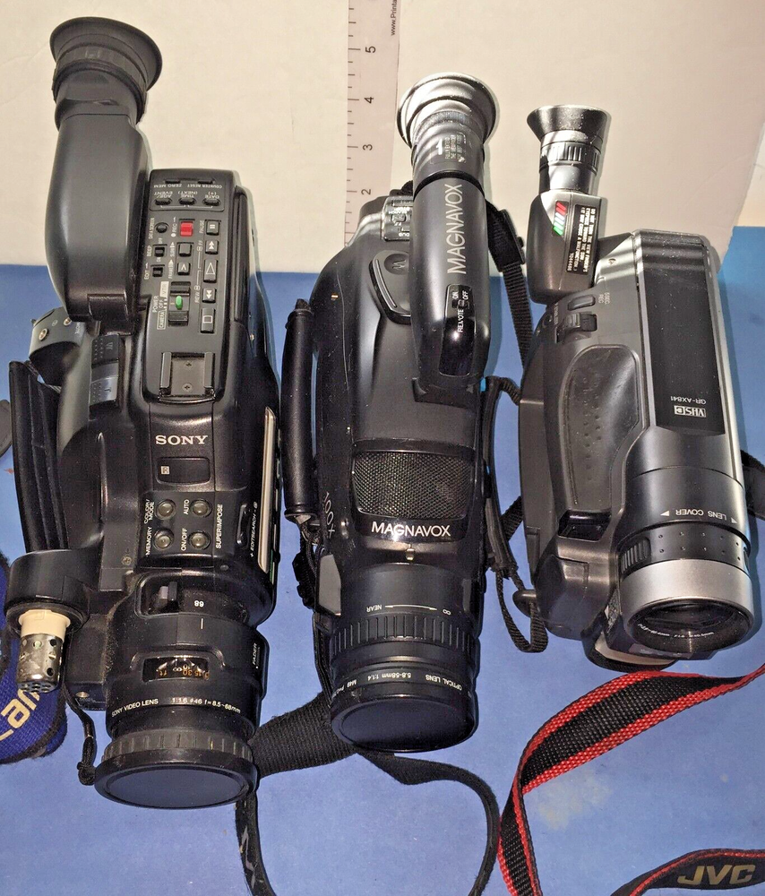 1-Sony CCD-F401 Camcorder - Black Video 8 untested "AS IS" 1-Magnavox Easy Cam CVR630A101 VHS C untested "AS IS" 1-JVC GR-AX841U Compact VHS untested "AS IS"