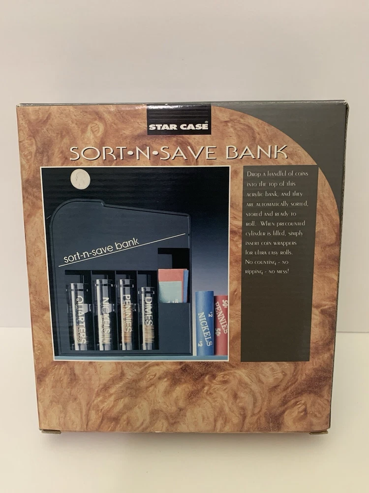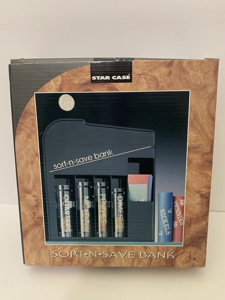 Vintage Sort-N-Save Bank Coin Sorter Counting System NOS Star Case 1995 233CH Box has minimal wear, see pics