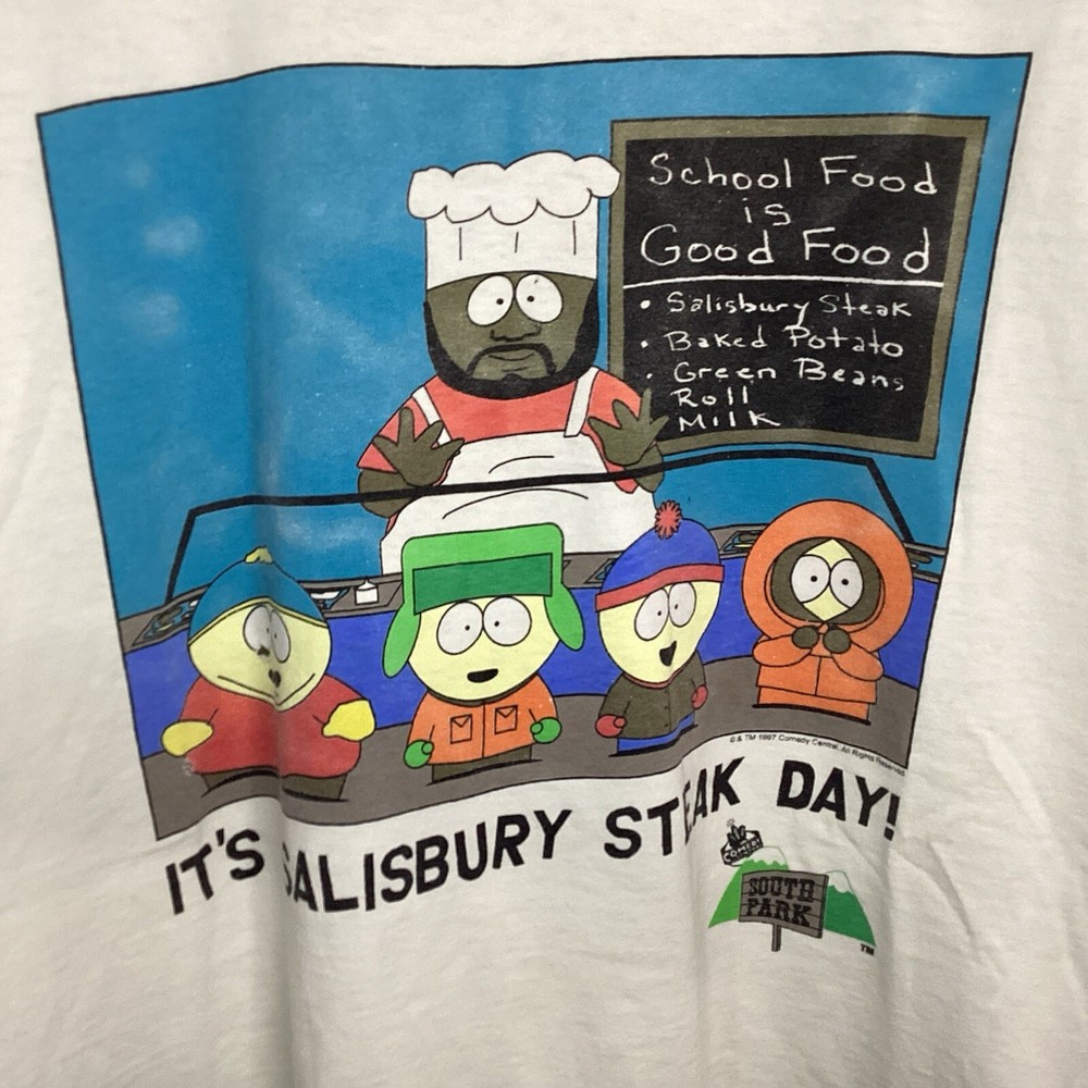 Vintage South Park Shirt Mens XL White Graphic Tee Salisbury Steak 90s Thrashed Brand: Gildan Size: Mens XL (Chest "23 / Length "28.5) Condition: Pre-Owned / Fair Used condition with minor signs of ware, please see photos for any specific defects or details worth noting. If item is used the item will be washed and inspected before listed. Items are stored in a smoke and pet free environment. We offer combined shipping discounts on multiple item orders. Any questions feel free to DM me thanks!!!