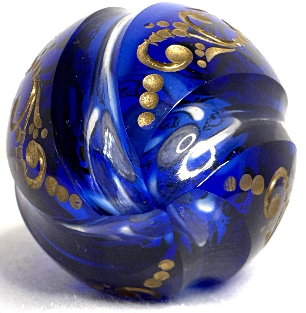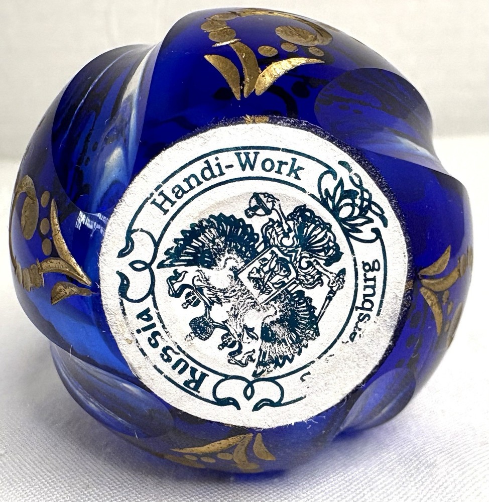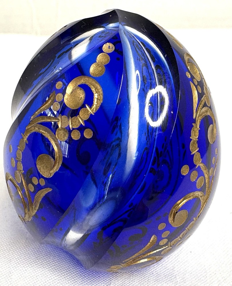 Vintage St. Petersburg Cobalt Blue W/ Gold Glass Egg 2.25” From Russia