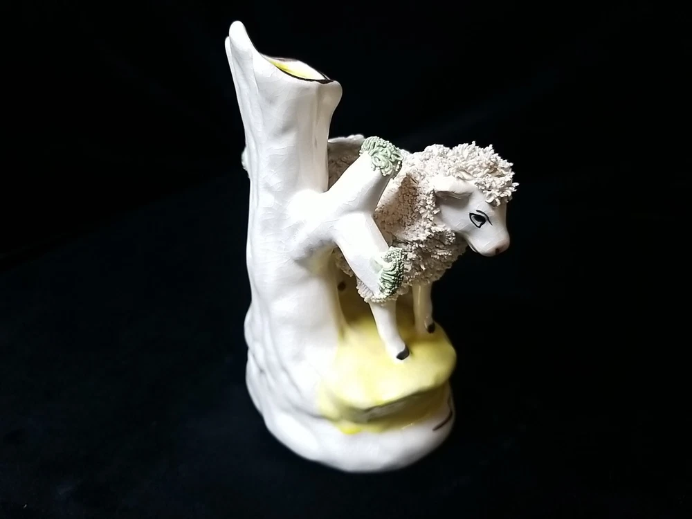 Material:PorcelainBrand:StaffordshireOrigin:StaffordshireColor:MulticolorVintage:YesType:VaseTheme:SheepCountry/Region of Manufacture:United KingdomSubject:Sheep