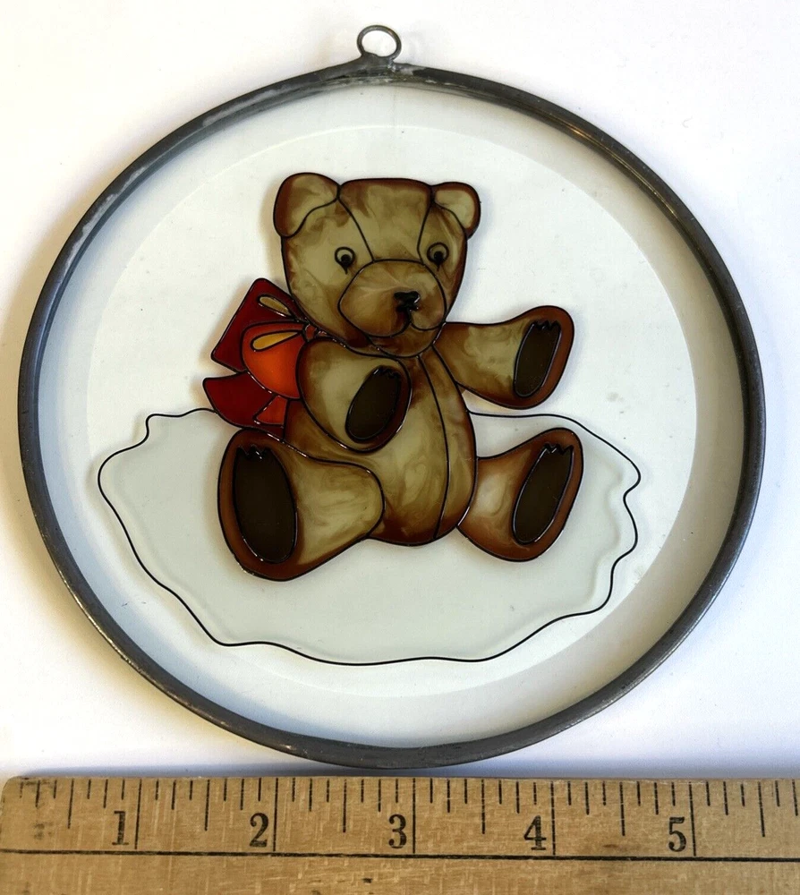 Character Family:Teddy BearRoom:Any RoomType:SuncatcherMaterial:Stained GlassStyle:ShabbyCharacter:Teddy BearBrand:HandmadeUPC:Does not applyColor:MulticolorFinish:Paintedgtin13:Does not applyCountry/Region of Manufacture:UnknownSeller Notes:“Excellent pre-owned condition.”