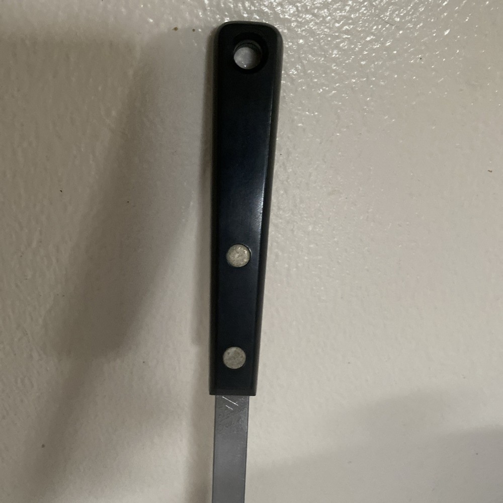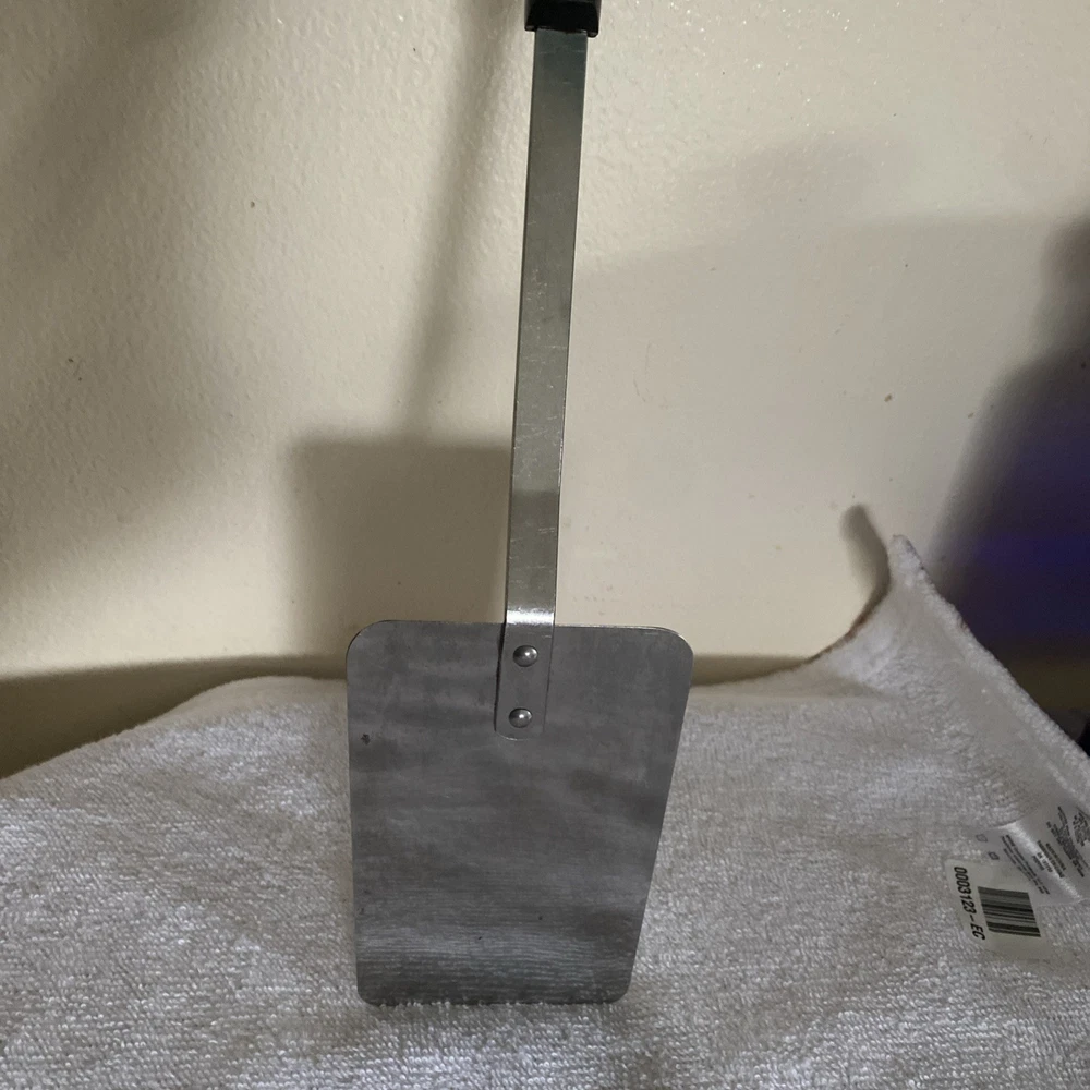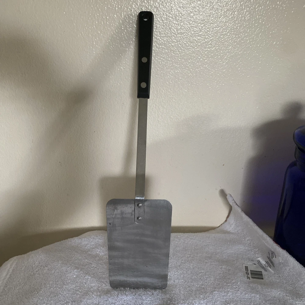 The Vintage Stainless Steel USA Spatula is a collectible kitchen tool perfect for flipping pancakes, burgers, and other dishes. Made in the USA, this spatula boasts a classic design and durable stainless steel construction. Its ergonomic handle provides a comfortable grip, making it a practical and stylish addition to any kitchen collection. Ideal for cooking enthusiasts or vintage collectors, this spatula combines functionality with a touch of nostalgia. The only markings that I see on this flipper are lettering near the handle and it says stainless steel USA and there are two little tiny stars. It looks like an ECKO turner, but I am not entirely sure. There are some surface scratches and signs of use but still has many years to go. The handle is some kind of very dark smooth plastic. Maybe Bakelite . It is well made. Please see all photos.