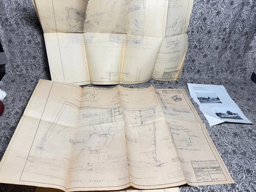 Trinity Antiques ~~~ Description: Vintage Standard Oil Gas Station Photo & Blue Prints Architectural Engineering Drawings ... Elgin, Illinois ... 7 copies and 1 copy ... plus photos Measures about ... Weighs about ... 1 lbs Condition: Please LOOK at the photos ... Overall Condition AS SHOWN ... surface wear ... as is paper ephemera & Photos Shipping: USPS MAIL / FEDEX ... 1 lbs ... plus packaging & Insured / Signature Confirmation ... PLEASE Check shipping COST before bidding There is a GOOD start price SO a $3 Fee has been ADDED to the cost of SHIPPING to cover expenses :) Love Antiques & Treasures I am not an expert Antique Dealer I just go to local sales & thrift stores & hope to resell :) PLEASE * NO RETURNS * Take time TO READ the Description LOOK OVER PHOTOS ASK QUESTIONS before bidding REVIEW my Feedback score & comments * PLEASE DO NOT BE OFFENDED * BUYERS PLEASE ... try not complaining when you really just want some money back, but still want to keep the treasure :( PLEASE ... try not stealing some items in a lot & just returning what you did not want :( PLEASE ... try not returning your own damaged goods :( PLEASE ... try really hard not to hurt my family with false claims :( ~~~ I have a wonderful & loving 14 year old autistic son :) I truly appreciate YOUR support as every penny of my ebay sales gives us the joyful opportunity to homeschool & work from home Thank You ~~~ May the peace of G*D be with us all ~~~