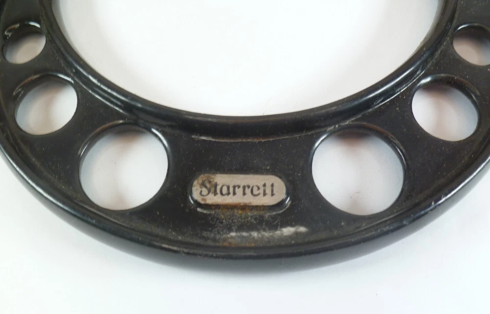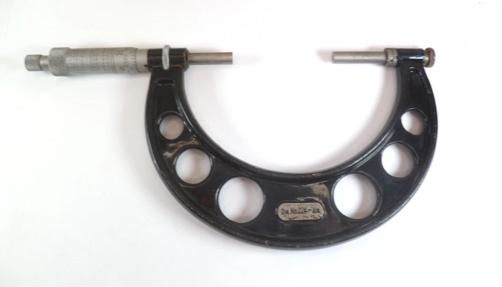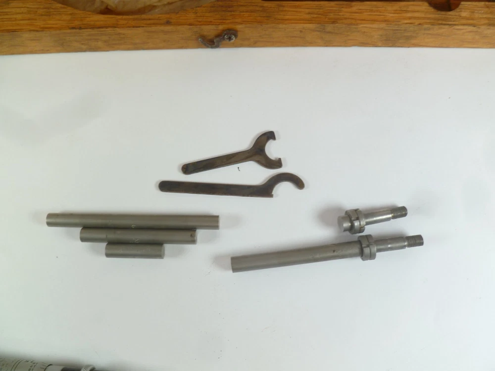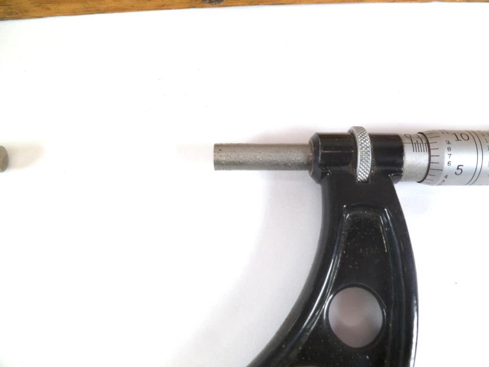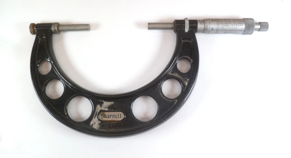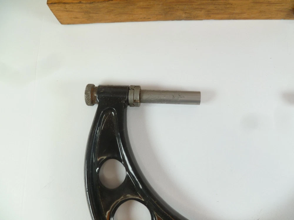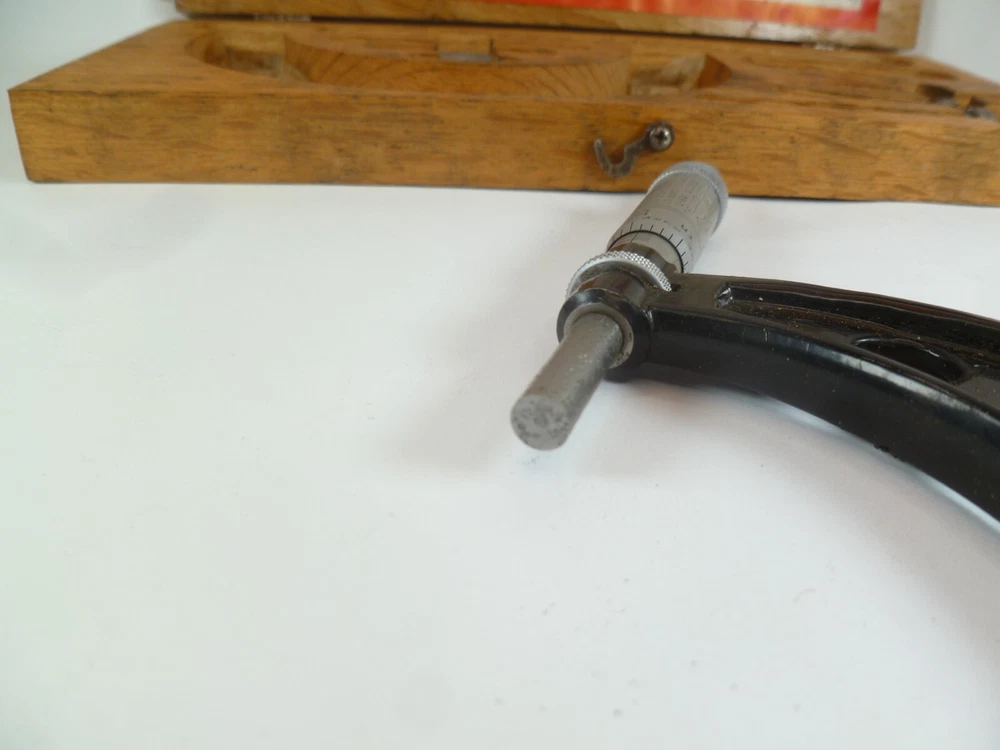 Here is an Older Starrett No. 224 Micrometer Caliper Set AA. It is missing the biggest anvil. It is being sold for parts or repair because there is some corrosion to the spindle, including to the face of it. the wood box is dirty.