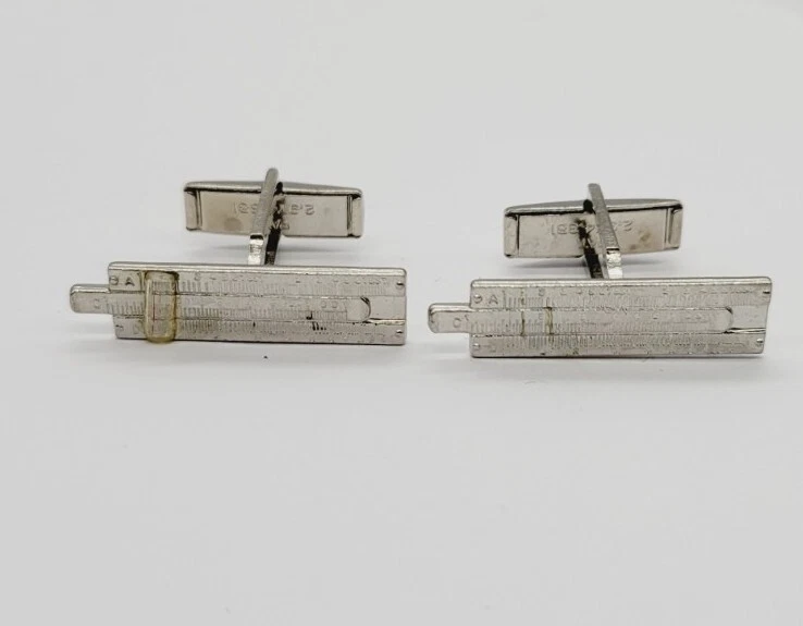 Vintage Sterling Silver Ruler Cuff Links RARE
