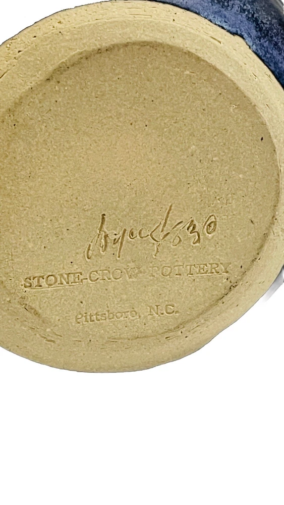 This unique vase is a wonderful addition to any collection. Handmade by Joyce Brown in Pittsboro, North Carolina in 1983, it features a beautiful all-over pattern of stones. The vase stands at 5 inches tall and has a glossy finish. H- 5 inches Dimension opening- 4 3/4 inches 6 1/2 across spout to handle Very good condition. Minimal sign of wear and tear. No chips, cracks or discoloration. Please see all attached photos and zoom in for imperfection. Free shipping with bundle of care.