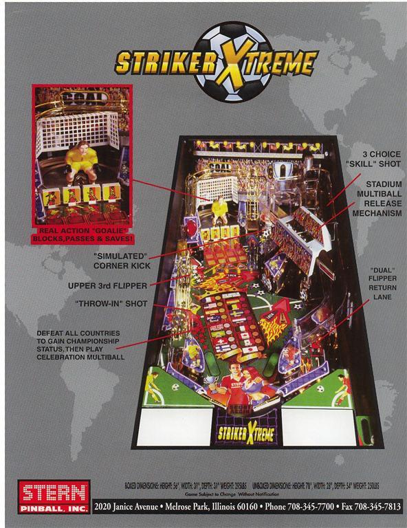 Striker Xtreme Pinball Flyer Original NOS Flipper Game Art Print Stern 2000 Original never circulated new old stock paper promo sales flyer. Single page double sided artwork sheet. Flyers are paper promotional advertising art print sheets made for coin operated amusement arcade games. Also called a circular, brochure, pamphlet, or flier. Size is 8.5" X 11". Perfect for framing. Sheet protector included with each flyer sold. More pinball, jukebox, slot machine, and vintage arcade game items for sale in our store. SHIPPING Bundle and save by using cart and making single payment. International buyers are responsible for any import fees/taxes. ABOUT US Seller of vintage retro collectibles, pop culture, paper ephemera, new old stock advertising, artwork, original pinball flyers, vinyl records, Mr. Peanut, video arcade flyers, pinball machine parts, game manuals, pinball promo plastics, Mad magazines, antique Halloween and holiday postcards, Christmas items, super hero memorabilia, horror themed art, fun gifts.
