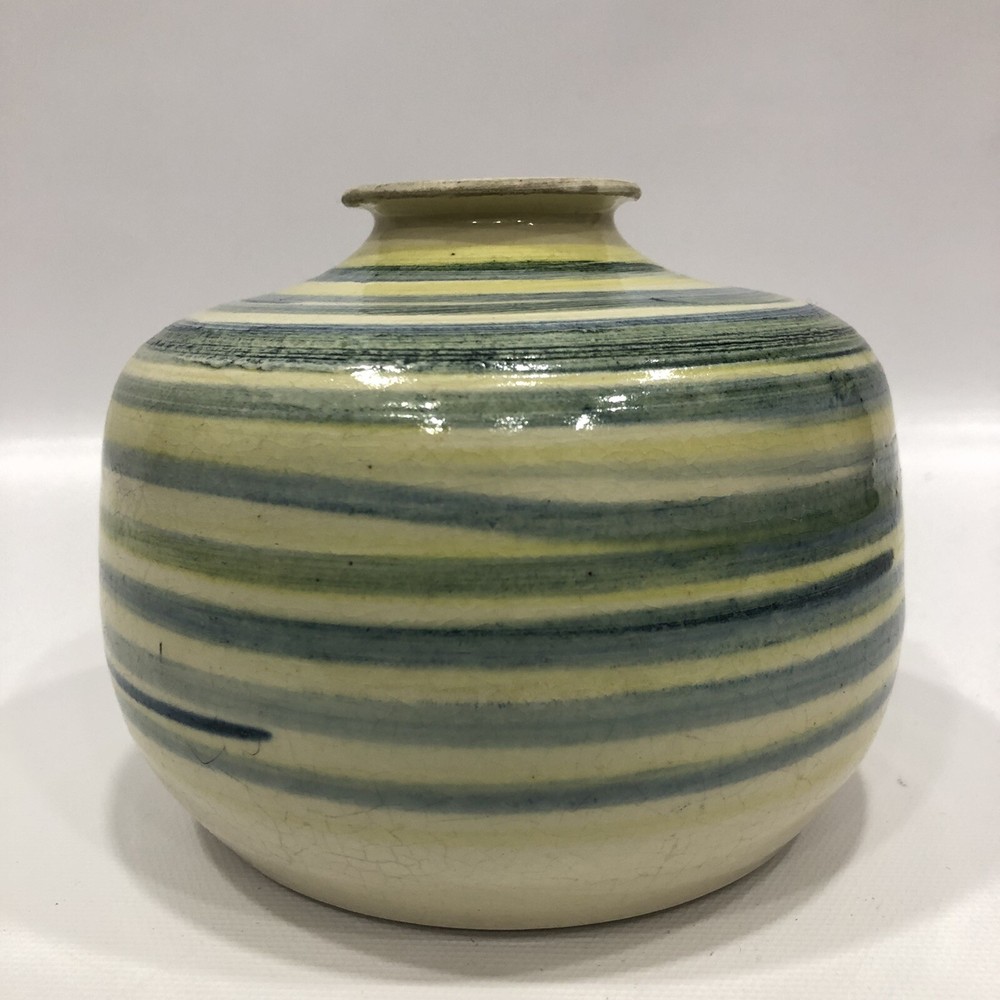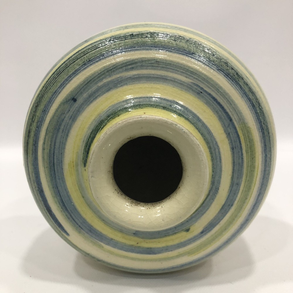 Vintage Round Studio Pottery Vase colorful Signed by E.T.B. 1975; 5.5” Tall; 1.5” Diameter. Condition is "Used in great shape! Shipped asap by USPS Priority Mail.