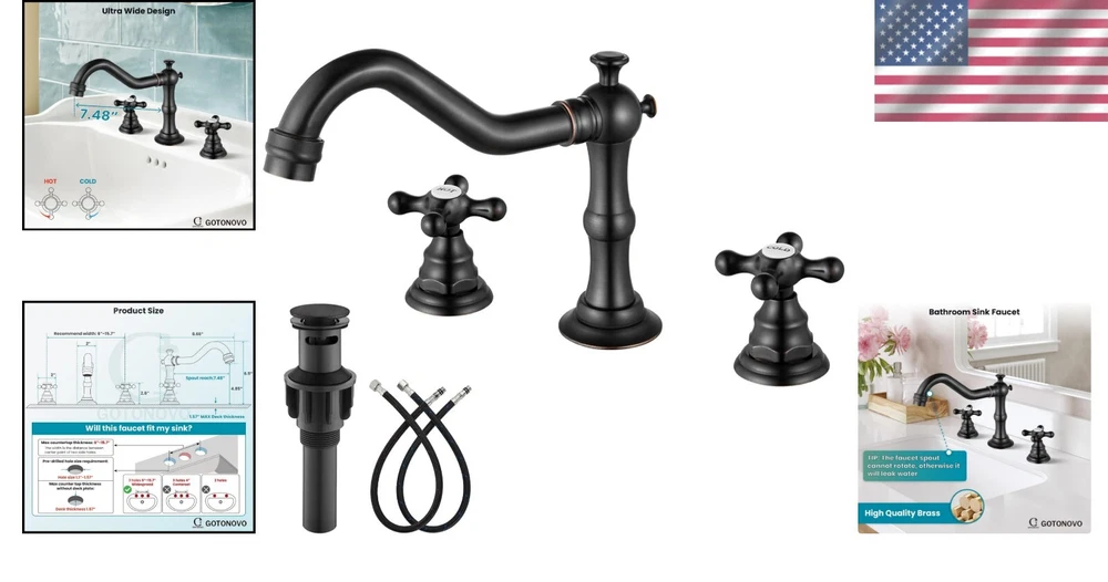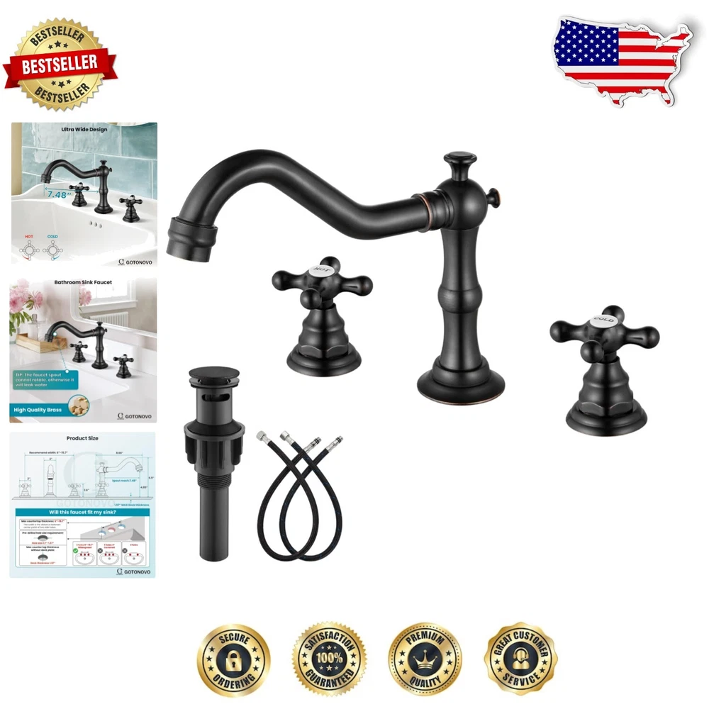 Vintage Style Bathroom Sink Faucet - Oil-Rubbed Bronze with Drain Included ‹ › ‹ › ‹ › ‹ › ‹ › ‹ › ‹ › ‹ › ‹ › ‹ › ‹ › Vintage Style Bathroom Sink Faucet - Oil-Rubbed Bronze with Drain Included Features: Constructed from solid brass structure with a multi-thickness nano electronic coating to prevent discoloration and rust. Warm and soft oil rubbed bronze finish that resists fingerprints and water stains. Two cross handles designed for precision control over water flow and temperature with a high sealing ceramic valve cartridge. Water flow rate of 1.18 GPM for optimal performance. Dimensions: Faucet height 6.5”, spout height 4.85”, spout length 7.48”; compatible with three holes measuring 6”-15.7”. Includes pre-drilled hole size of 1.1”-1.57”. What’s Included: Widespread bathroom faucet with 3/8" female threaded to M10 male hot and cold supply hoses. Pop up drain. Faucet body and all necessary hardware accessories. Installation manual for hassle-free setup. Transform Your Bathroom Elevate your bathroom with our Vintage Style Bathroom Sink Faucet, designed to bring timeless elegance and efficiency. Crafted from solid brass with a stunning oil-rubbed bronze finish, this faucet not only enhances the aesthetics of your space but also promises durability and ease of use. With its user-friendly design featuring two cross handles and a ceramic valve cartridge, controlling the water flow and temperature is a breeze. The included pop-up drain and hardware ensure that your installation is as seamless as your faucet’s operation. Why Choose Our Vintage Faucet? This faucet is the ideal combination of style and practicality. The sophisticated oil-rubbed bronze finish allows for easy maintenance while resisting fingerprints and water stains. Your bathroom will not only look gorgeous but also be functional and easy to clean. Invest in elegance and functionality today—your bathroom deserves it. Order your Vintage Style Bathroom Sink Faucet now and experience the luxurious upgrade! Shipping Free & Fast Shipping - We offer free shipping to most of the USA with a normal delivery time of 3-7 days. However, due to the current situation, additional delivery time (up to 3 weeks) may be required for some items. Alternative Carriers - We may use alternative carriers (e.g. USPS, FedEx, UPS, etc.) to ensure your package arrives safely and on time. Due to the use of multiple carriers, we are unable to provide a tracking number automatically. Handling Time - Orders are processed and shipped within 1-2 business days of receiving cleared payment. Shipping Restrictions - Shipping to Alaska, Hawaii, Puerto Rico, Guam, and other US territories may incur shipping charges or delivery restrictions. Please contact us before ordering, or your order can be refunded/cancelled. State Restrictions - There may be restrictions based on your state of purchase. For example, certain items may not be shipped to California due to state regulations. Contact for Tracking Updates - If you require tracking updates or have any concerns about the delivery of your order, please feel free to contact us, and we will be happy to assist you. Return 30-Day Hassle-Free Returns - We want you to be completely satisfied with your purchase. If you are not, you can return the item within 30 days of receiving it for a full refund or exchange. Easy Return Process - To start a return, simply contact us and we will provide you with a prepaid return shipping label and detailed instructions. Restocking Fee - There are no restocking fees for returns. However, the buyer is responsible for return shipping costs if the return is not due to a seller's error. Refund Processing Time - Refunds will be processed within 5 business days of receiving the returned item in its original condition. Payment We accept all major credit cards, PayPal, and Apple Pay for your convenience. Your payment information is secure and encrypted to ensure a safe and seamless transaction. Please complete your payment within 3 days of purchase to avoid any delays in shipping. Feedback Your feedback is extremely important to us. We strive to provide the best products and customer service possible. If you are satisfied with your purchase, please take a moment to leave us a positive review. If you have any concerns or issues with your order, please contact us before leaving negative feedback. We are committed to resolving any problems and ensuring your satisfaction. Contact Us If you have any questions or concerns, please feel free to reach out to our customer support team. You can contact us through the eBay messaging system. We are available Monday to Friday, 9:00 am to 5:00 pm EST, and we will do our best to respond to your inquiry within 24 hours. Buy it now and enjoy a pleasant shopping experience! UPC: Not Set Item Weight: 4.7 Model: Not Set Unit Quantity: 1 Material: Brass Suitable For: Bathroom Sink Features: Water Conservation,Pop Up Drain Labels & Certifications: Not Set Room: Bathroom Items Included: Pop Up Drain,Faucet Body,Hose,Instruction Manual Brand: Unbranded Number of Faucet Holes: 3 Number of Faucet Handles: 2 Finish: Oil-Rubbed Color: Oil Rubbed Bronze Faucet Mounting Type: Deck Mount Type: Bathroom Sink Faucet Shape: Non-Swivel Spout Handle Type: Knob Item Height: Not Set Item Width: Not Set Item Length: Not Set Faucet Hole Spacing: 1.1"-1.57" Installation: Widespread Spout Height: 4.85 Inches Manufacturer Warranty: Not Set MPN: Not Set Manufacturer: Not Set Number in Pack: 1 Product Line: Not Set Style: Traditional Country/Region of Manufacture: Not Set Unit Type: lb Assembly Required: Not Set