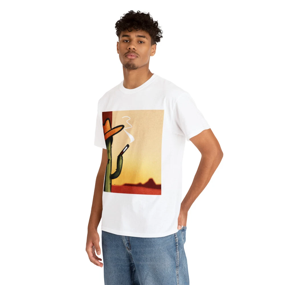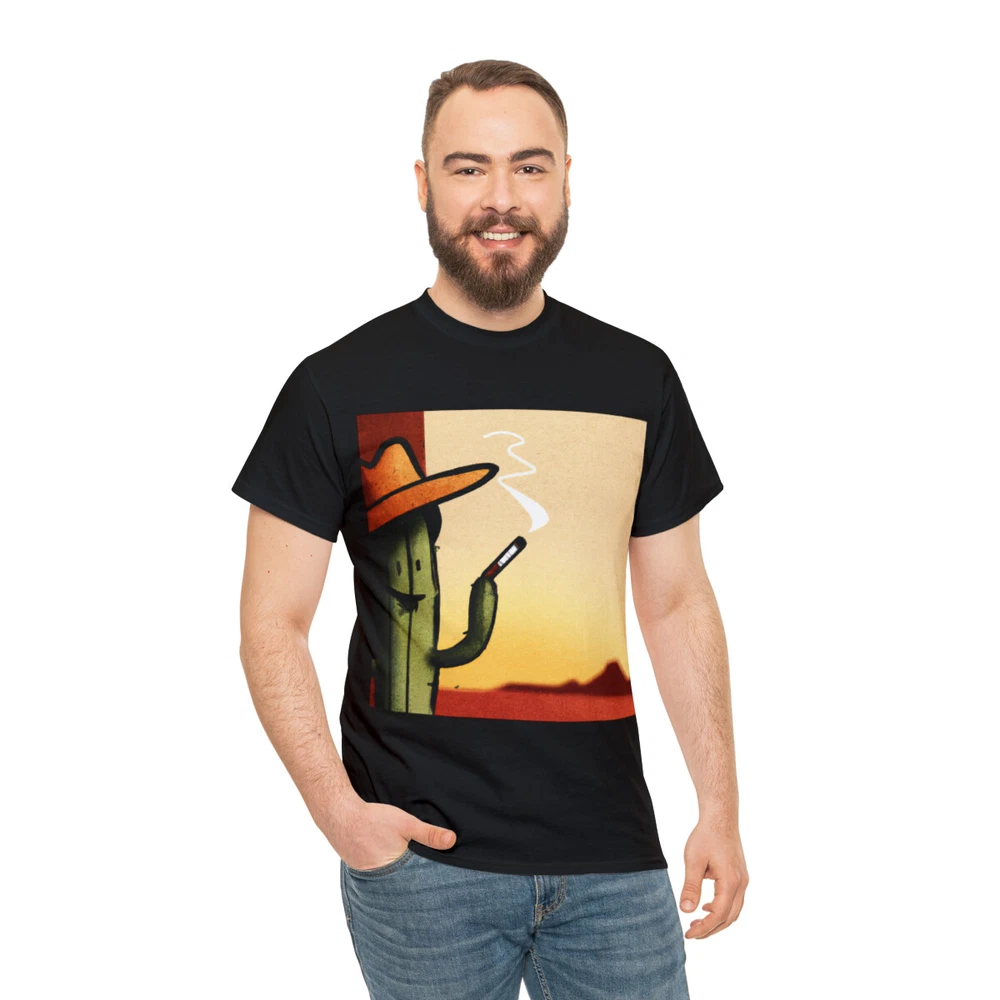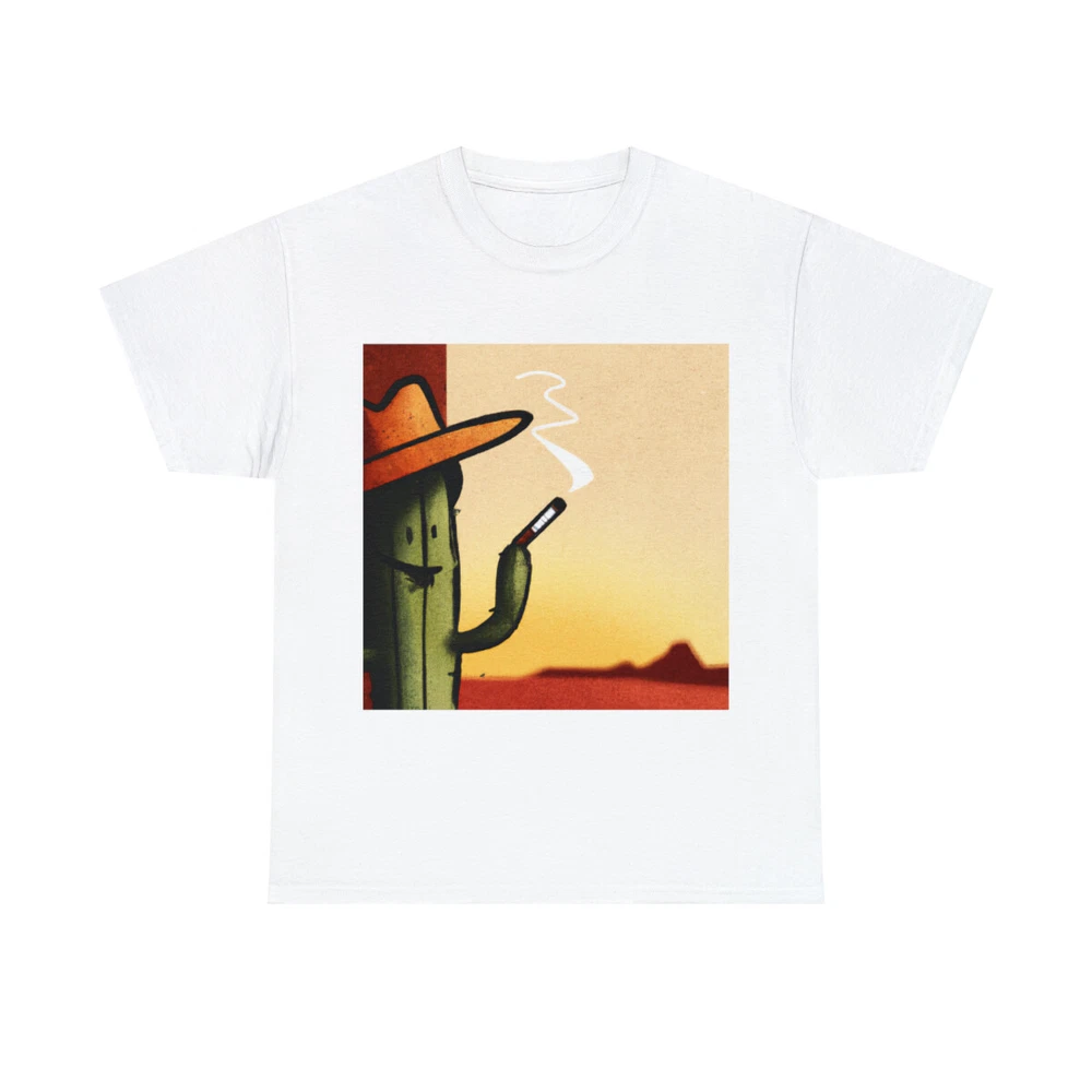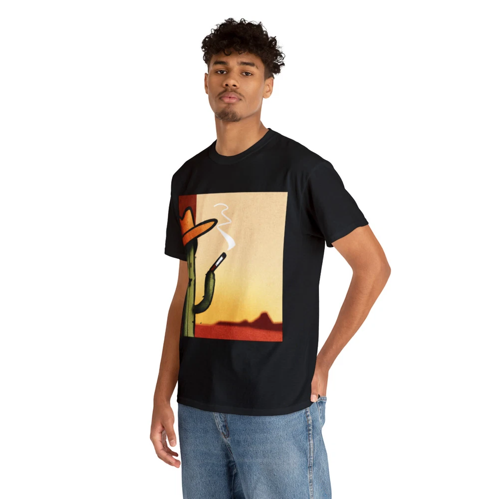 Vintage Style Cowboy T Shirt Cactus Funny Desert Western Cartoon Smoking Cig