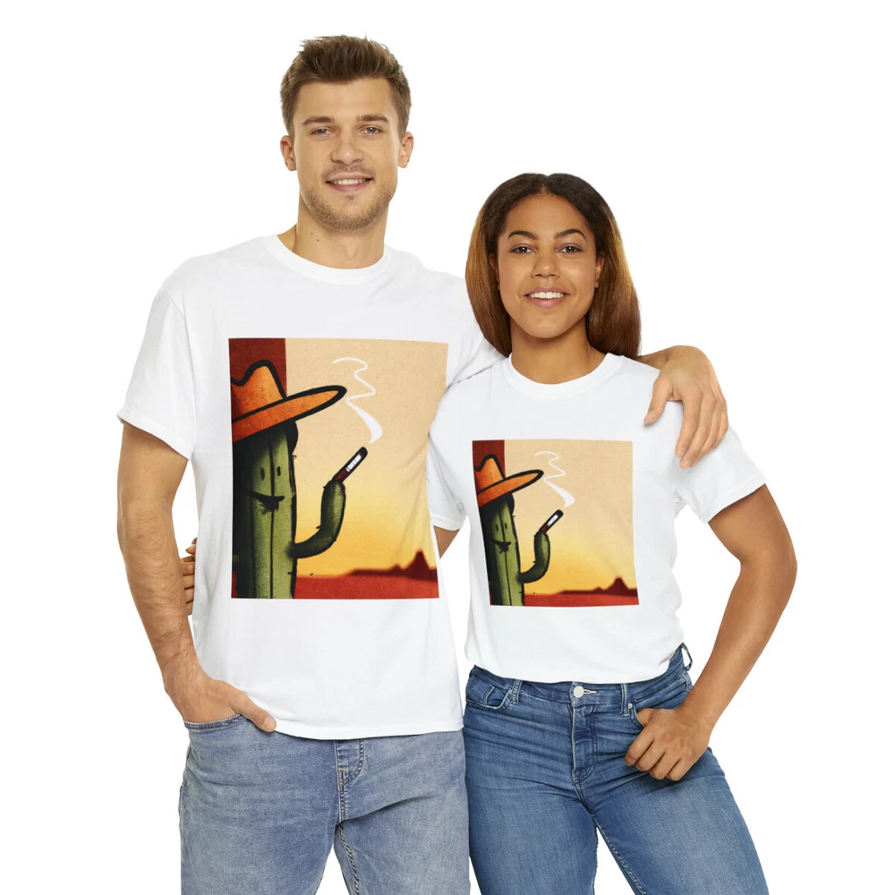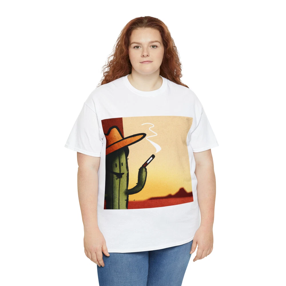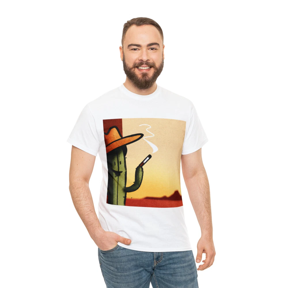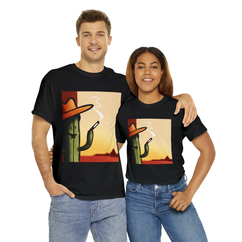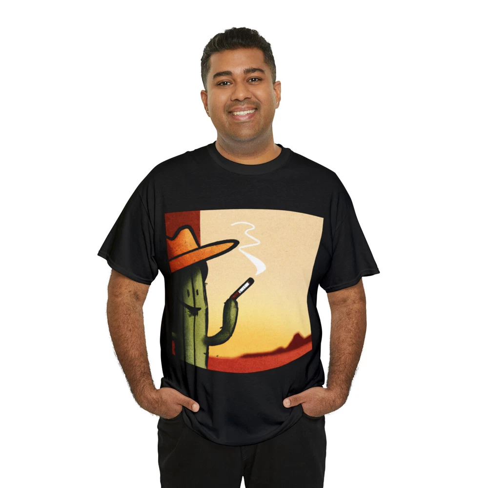 Vintage Style Cowboy T Shirt Cactus Funny Desert Western Cartoon Smoking Cig