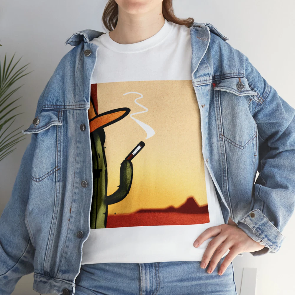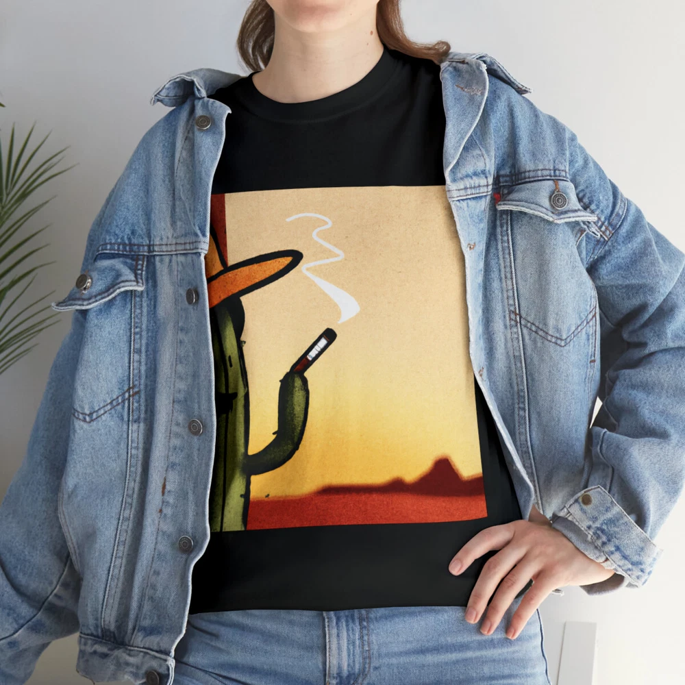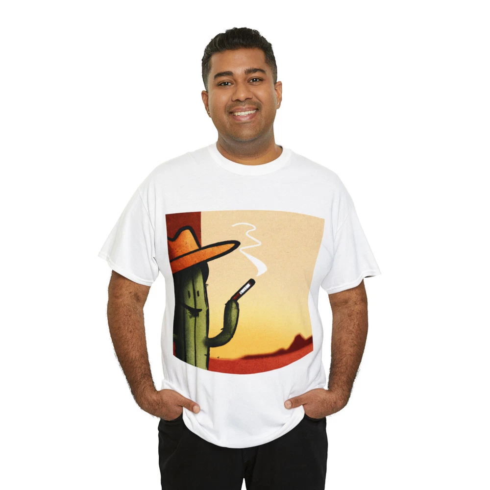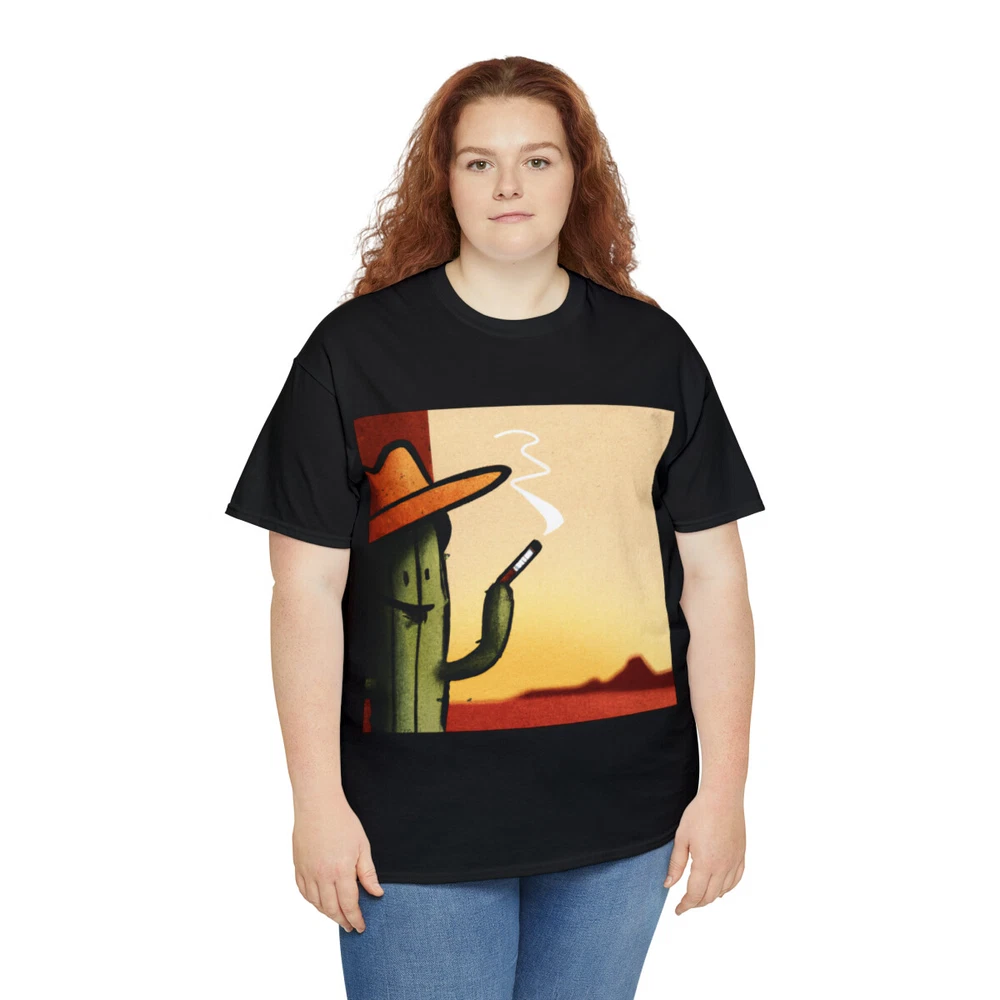 Vintage Style Cowboy T Shirt Cactus Funny Desert Western Cartoon Smoking Cig