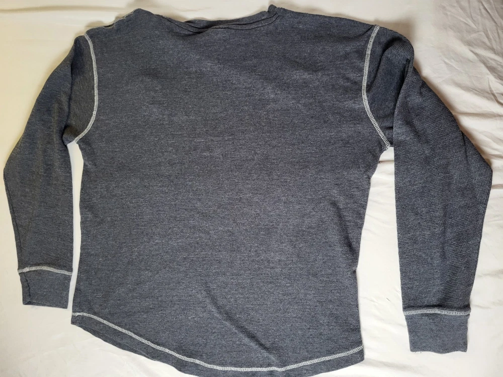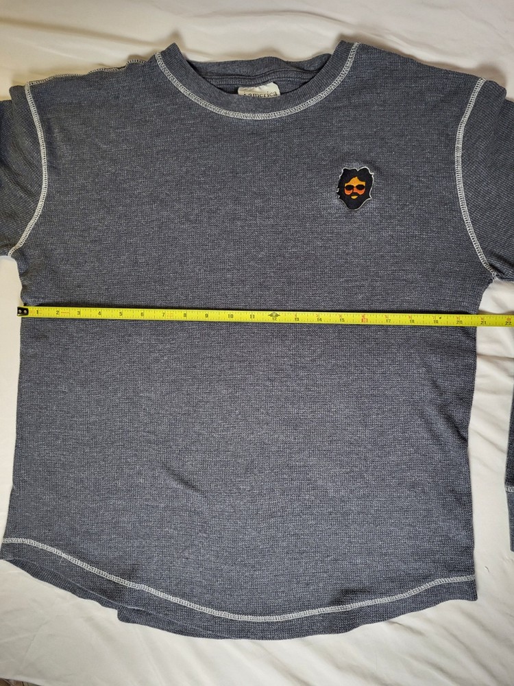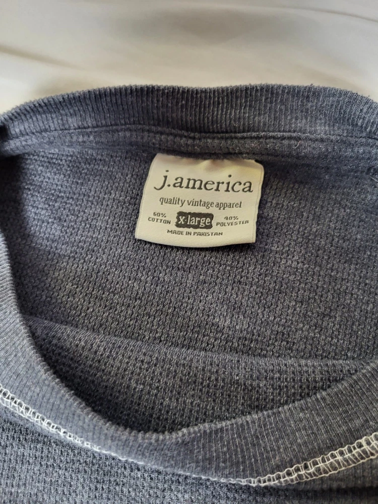 This Vintage Style Jerry Garcia Embroidered Thermal Long Sleeve Tee in size XL is a must-have for any Grateful Dead or Jerry Garcia fan. Made of cozy cotton knit fabric, this gray shirt features a graphic print and embroidered accents that give it a unique vintage look. The crew neck and regular fit make it comfortable for all-day wear, while the thermal features add extra warmth during the winter season. Machine washable for easy care, this shirt by j.America is a stylish and versatile addition to any man's wardrobe. #0174