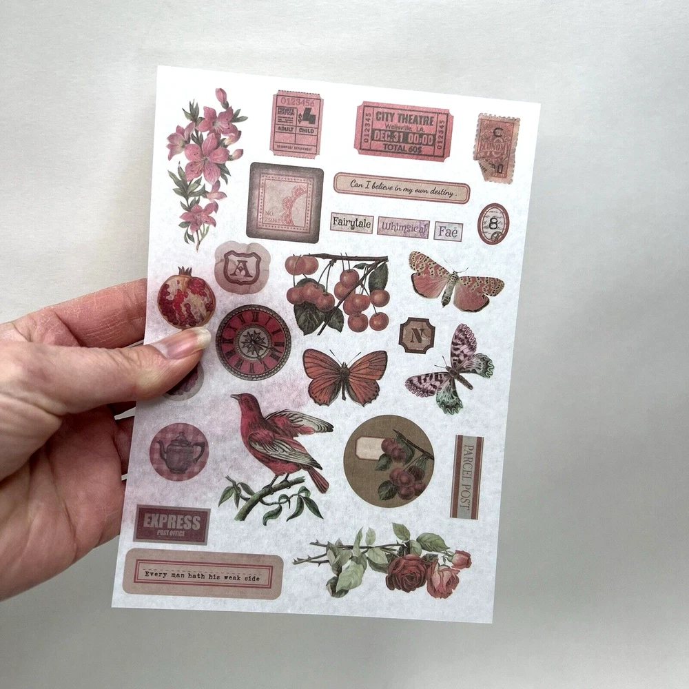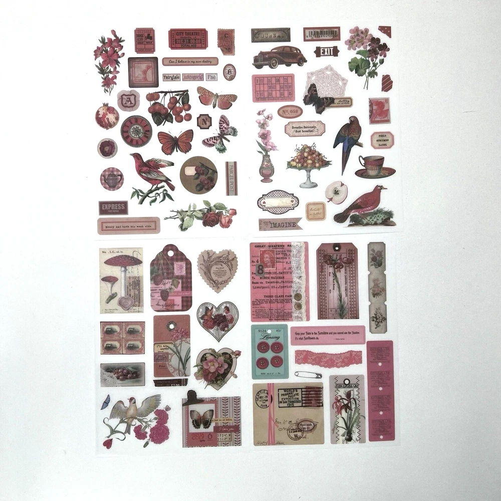 4 sheets. Vintage style Victorian garden. Red hued. Washi paper stickers. Kiss cut stickers so no need for scissors. Washi paper has some transparency to it so a light or white background will work best with these. The sheets measure approx. 6 5/8 x 4 3/4 inches. I have more stickers, washi tape and paper for sale. I do combine shipping. Please put all the items you want to purchase in ONE cart and then pay. I will refund you the difference in shipping after shipping label is printed. Let me know if you have any questions through eBay messaging. Thank you for stopping by!