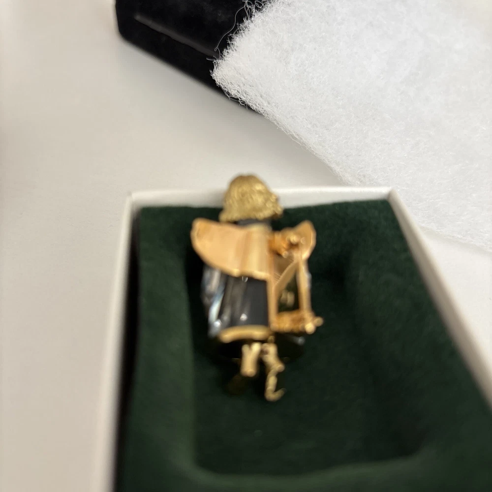 This vintage Swarovski Crystal Angel pin brooch features a dazzling crystal design. The brooch is adorned with an angel theme, making it a charming and elegant accessory. Perfect for collectors or those who appreciate vintage jewelry. All original box & paperwork included.