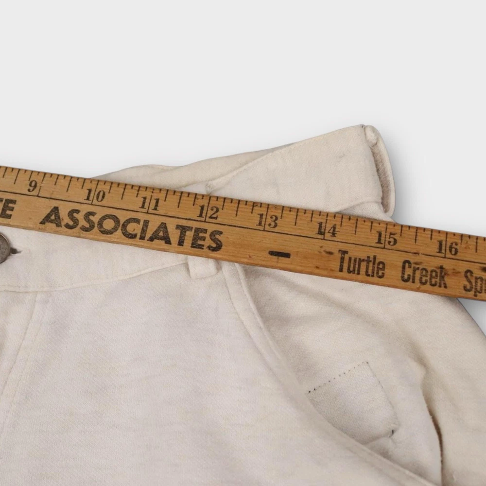 Upgrade your casual wardrobe with these vintage sweat shorts from Kearney House. Featuring a zip closure and drawstring waist, these cargo-style shorts are both stylish and functional. The 5-pocket design provides ample storage space, while the flat front and mid-rise fit give them a classic, timeless look. Perfect for summer, fall, or spring, these shorts are made from easy-care cotton material and are machine washable for your convenience. In addition to their practical features, these shorts also boast a hipster and school-themed design, making them a versatile choice for any casual occasion. With a solid white color and adjustable waist, these shorts are sure to fit comfortably and look great on any man. Don't miss out on this vintage gem! Tag Size: Men’s Large Best Fit: * Men: M/L Condition: Minor Yellowing Towards Waist Approximate Flat Measurements: * Waist: 15” * In Seam: 19” * Out Seam: 9” All items are second hand, many being vintage and may have small imperfections. Anything major is noted.