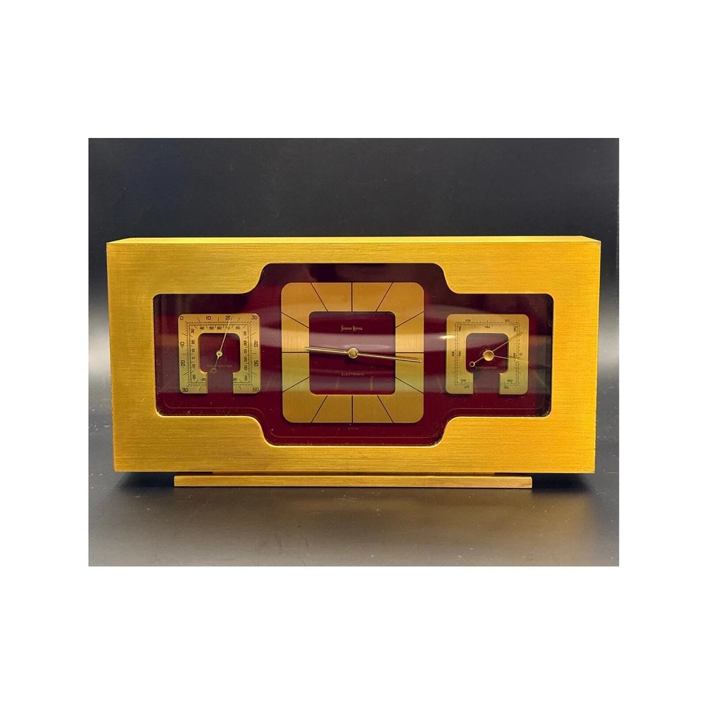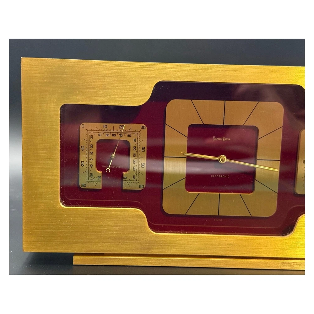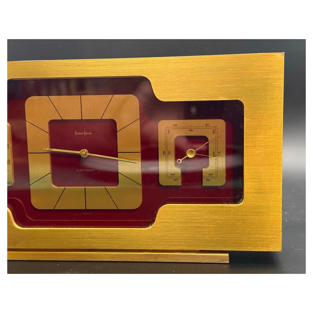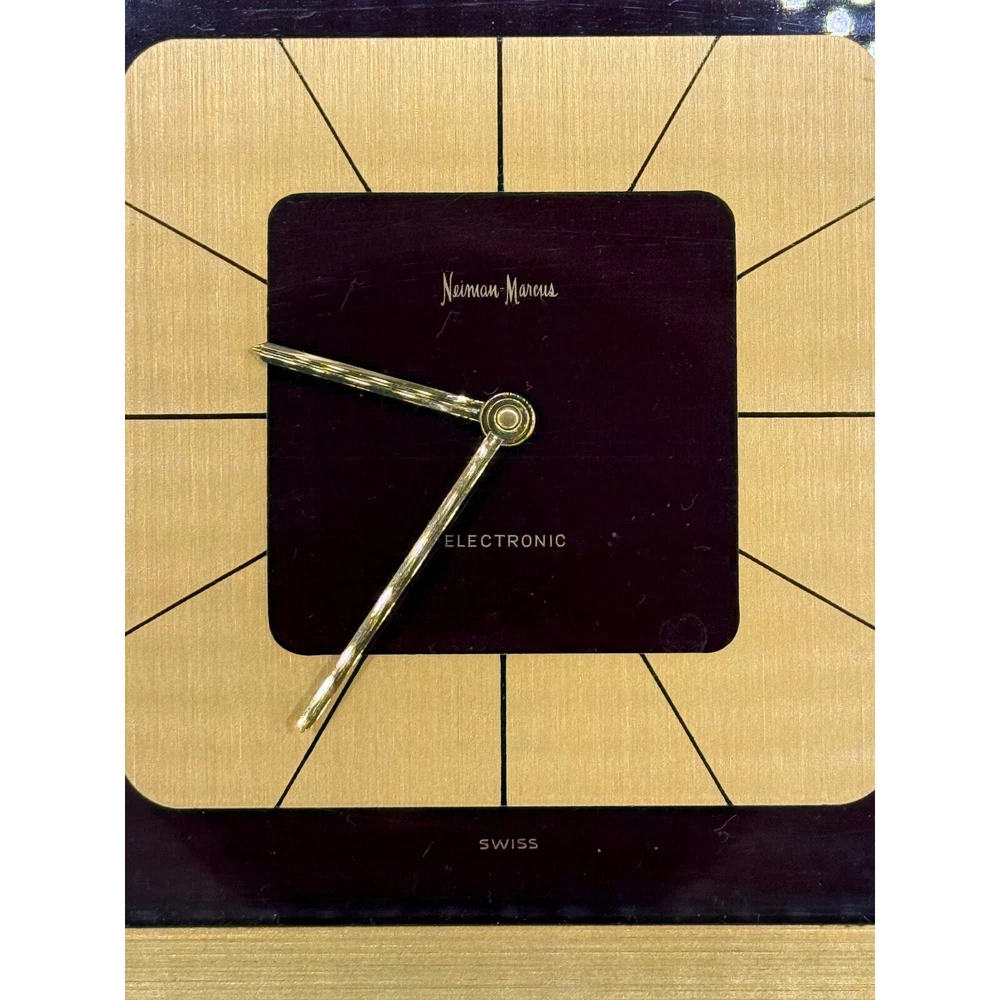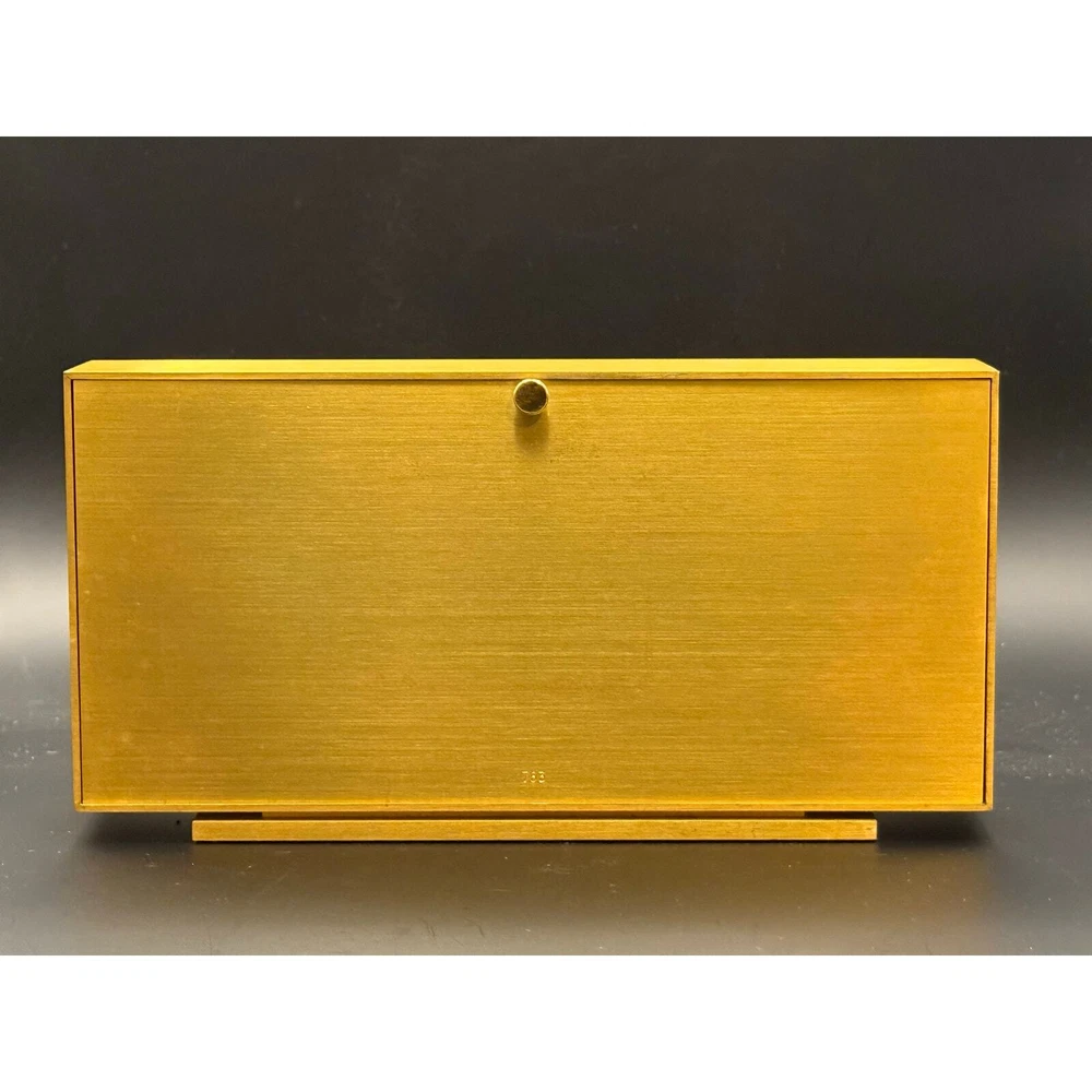 Vintage Mantel gold brass Swiss clock. Great mantel piece to elevate your home decor. In good vintage condition. Shows some signs of wear mostly in the corners and in the back. Please see pictures. Clock works with a double A battery. Approximately 9.25x4.75x1.75 inches Weights approximately 5.5 lbs