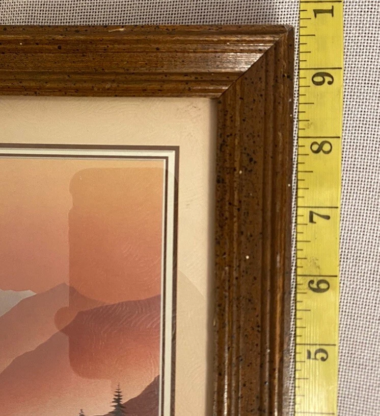 TC WOOD landscape print modernist framed under glass mountain trees moon Used, vintage, very nice shape, no issues Q) for inventory purposes only