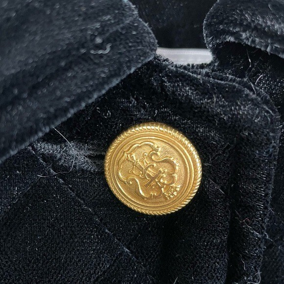 Vintage Talbots Petites Black Velvet Quilted Jacket Gold Buttons The perfect classic, sophisticated look for this winter Quilted black velvet with gold buttons down the front Collared Long sleeves with wrist cuffs Mid-length Lined Size P Very good pre-owned condition Approximate measurements: Pit to pit: 19” Length from shoulder: 29”