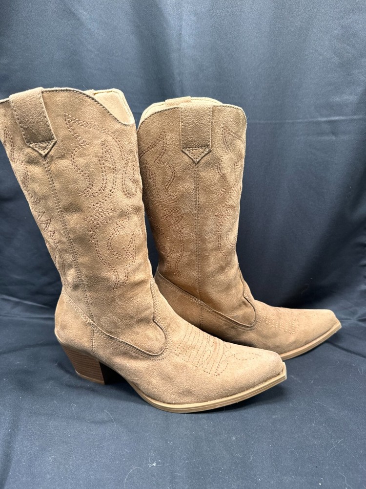 Vintage Mia Girl Larue Tan Western Faux Leather Heeled Cowgirl Boots Size 7