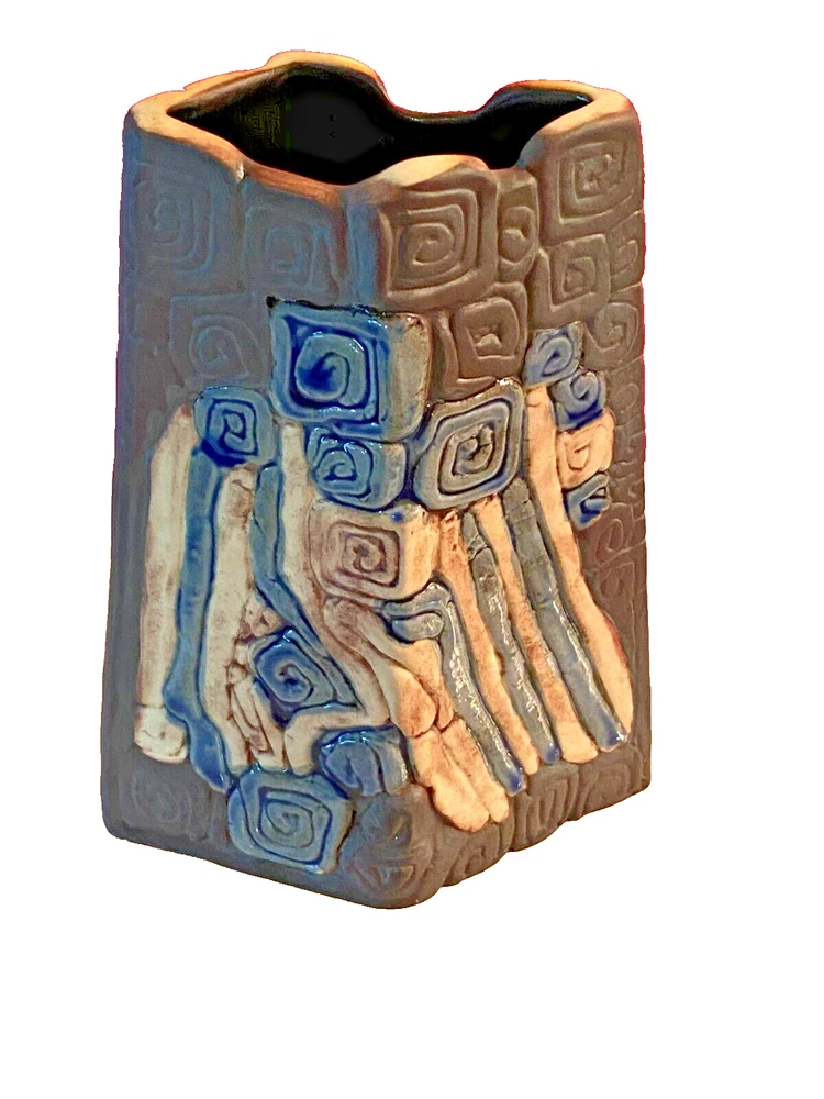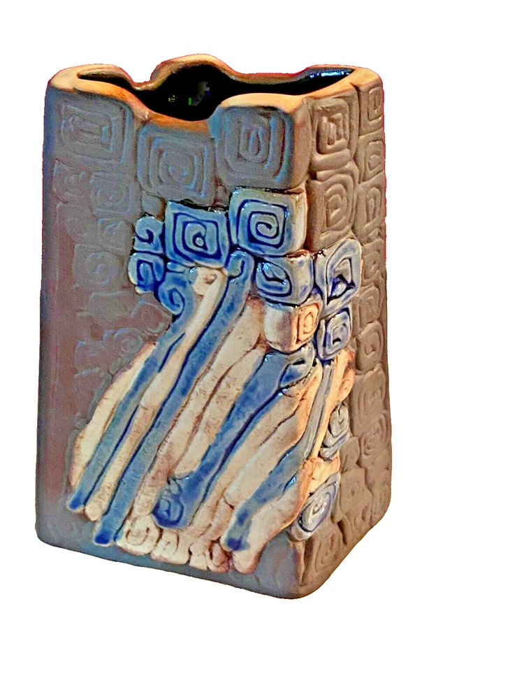 Vintage Tenmoku pottery vase from Malaysia. Made from natural clay and finished with a beautiful abstract art style. The vase is initialed and numbered. Brown with blue inlay; approx 5 inches tall and approx 4 inches wide. This vase is in excellent vintage pre-owned condition. There are no cracks or chips. Please see photos as they are part of the description. We always strive to ensure that every customer is 100% satisfied with their purchase and the service they received. We do our best to describe each item accurately. Please read the item description carefully and review the photographs closely – zooming in if necessary. Please feel free to ask questions and/or request additional photos if needed. This helps make sure that you are receiving what you hoped for. We endeavor to disclose any imperfections or anything that we believe should be known about an item. Measurements/size are approximate. Your purchased item will be processed and shipped within two business days after receiving cleared payment. Payment is due at the time of purchase. All items are sold as is. We use USPS Ground Advantage to keep shipping costs to a minimum. Our goal is to provide superb customer service. If for any reason you are not happy with your purchase or the service you received, please message us before you leave negative or neutral feedback so that we can begin working on a solution. We thank you for viewing our item, and hope you have a wonderful day!