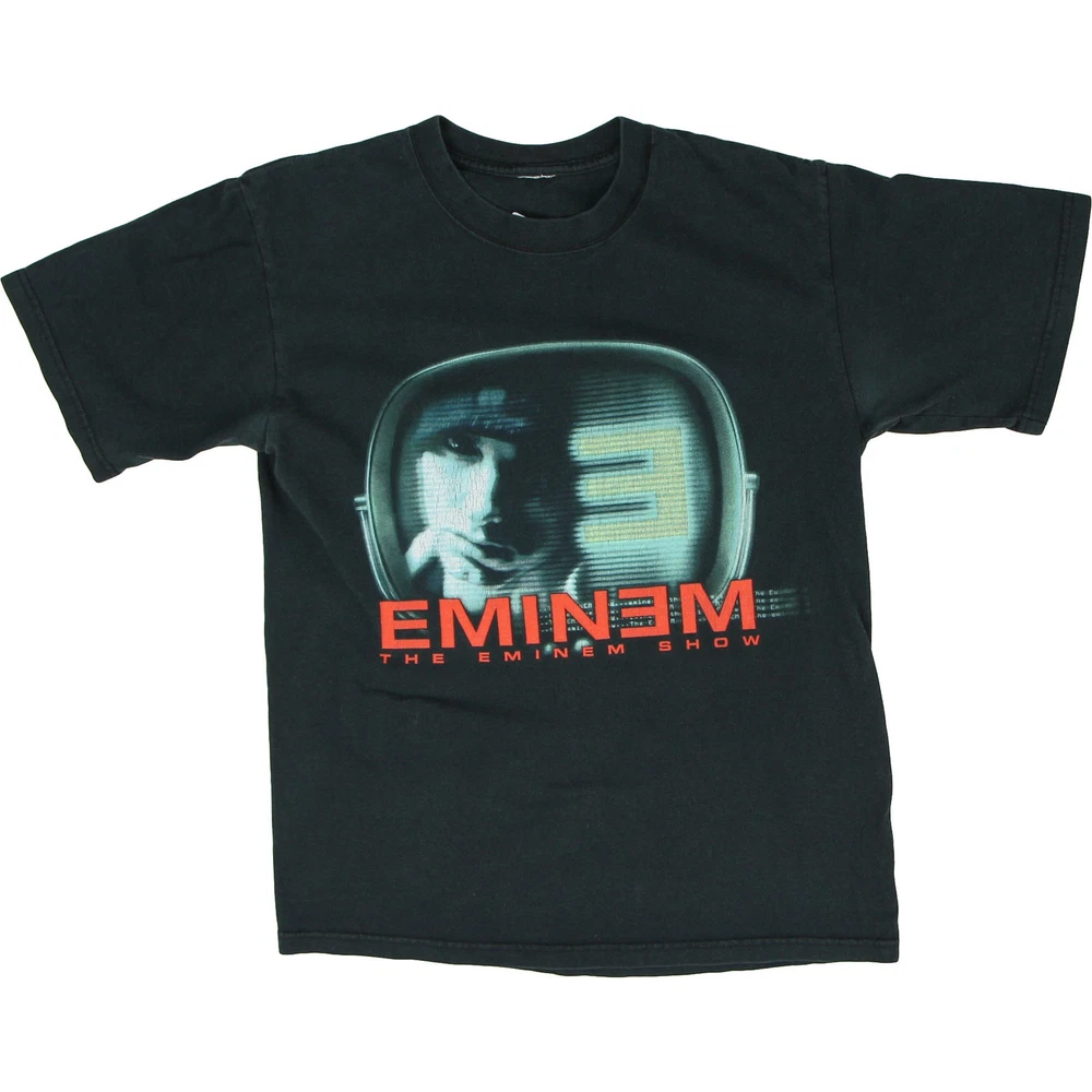 Relive the iconic era of Y2K hip hop with this Vintage Eminem Show T-Shirt. Featuring Slim Shady, this size S tee captures the essence of rap concert culture from the early 2000s. Its vintage appeal and unique design make it a must-have for fans of Eminem and the golden age of hip hop. Perfect for casual outings or as a collectible item, this shirt is not just a piece of clothing but a symbol of a revolutionary music era. Vintage The Eminem Show Slim Shady Hip Hop Rap Concert Y2K Tee T Shirt S material:cotton faded the print has cracks no labels size on tag:no size tag fits like a: women's: small , men's: xs mannequin is a size XS armpit to armpit:17.5 length(top to bottom):24 all measurements are in inches any major defect will be mentioned and/or photographed 15486 8t4s1