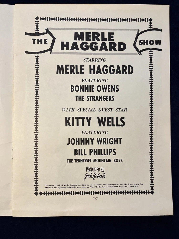 Vintage "The Merle Haggard Show" 1970 Concert Program W Special Guests Seattle Minor flaws but no rips or tears.