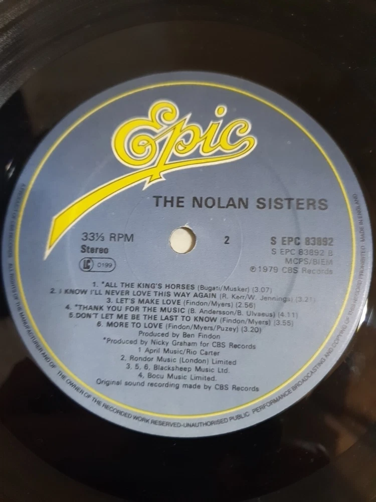 This vintage vinyl LP album by The Nolans, titled "Nolan Sisters," is a first edition release from 1979 under the EMI record label. The 12" record features 33 RPM speed and is in excellent (EX) grading, while the cardboard sleeve and inner sleeve are in good (G) grading. The album is a great addition to any music collection, perfect for any occasion, and is sure to bring back memories of the 1970s. The LP is in black colour and features original cover and inner sleeve. This classic electronic and pop album is in English language and was manufactured in the United Kingdom.