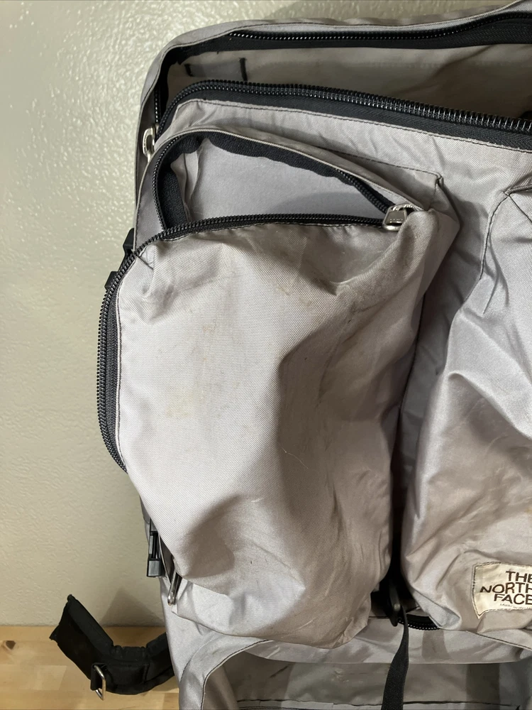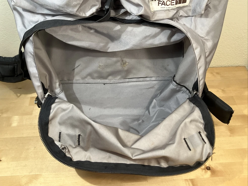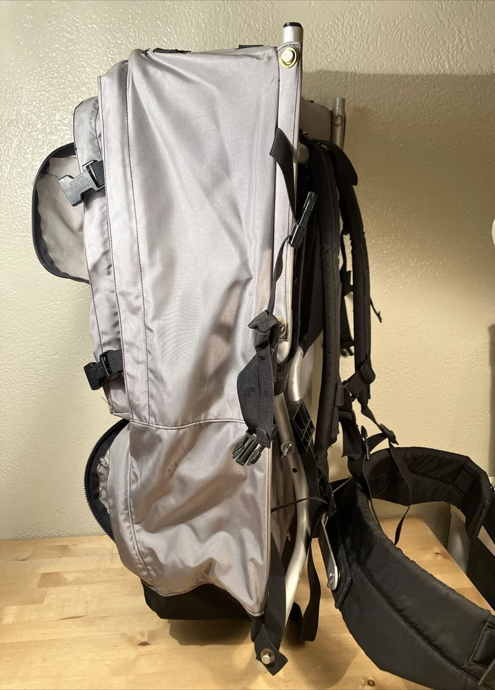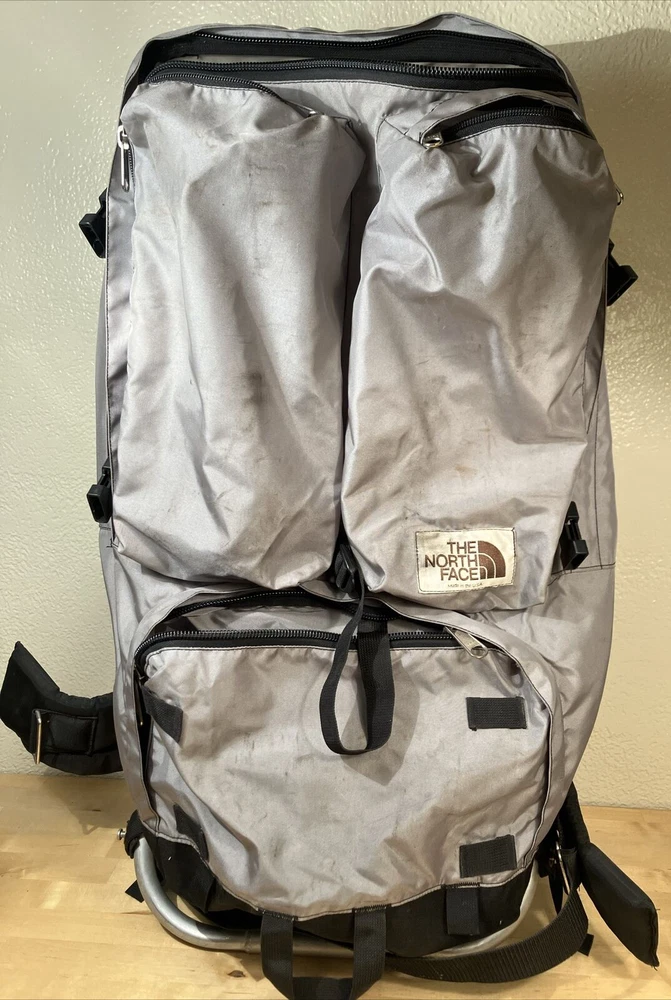 Number of Pockets: 4 Team: n/a Compatible With: n/a Sport/Activity: Hiking Item Depth: 10 Model: vintage Frame Material: Aluminum Product Line: n/a Trim Material: n/a Pocket Type: n/a Personalized: No Size: Large Care Instructions: Hand Wash Handle/Strap Material: Nylon Position: n/a Hidden Compartment: Material: Aluminum, Nylon Item Weight: 5.5 Item Width: 16 Custom Bundle: No MPN: n/a Capacity: N/A Color: Gray Manufacturer Warranty: n/a Type: external frame backpack Vintage: Yes Features: Adjustable Size, Divider System, Ergonomic Handle, External Pockets, Harness, Hip Belt, Lightweight, Multifunction Compartment, Padded, Padded Straps, Zip Fastener Department: Unisex Adults Strap Length: n/a Signed: No Item Height: 30 Brand: The North Face Country/Region of Manufacture: United States Number of Dividers: 2 Event: n/a Closure: Zip Event Type: n/a