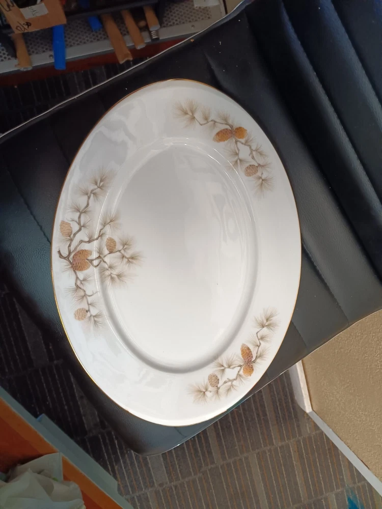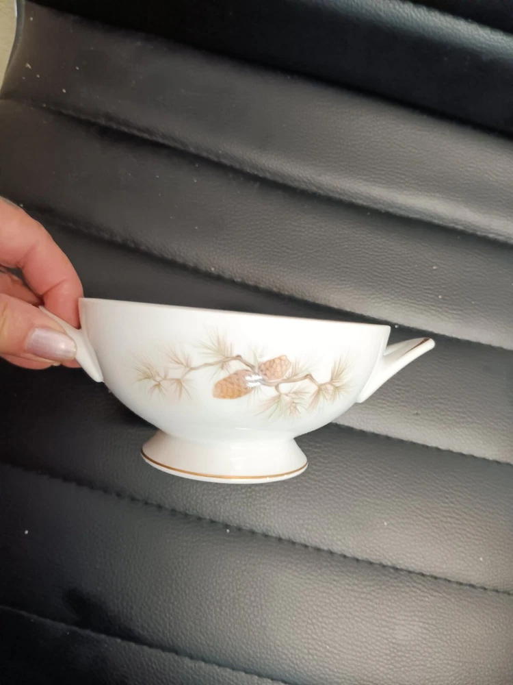 This vintage three crown China set is a stunning addition to any collection. The set includes plates, cups, and many other pieces, all featuring the beautiful rosenzahn aida pine needles pattern on a white background. Made in Japan, this vintage set is sure to impress. The brand is Crown and the color is white, making it a versatile addition to any decor. Perfect for collectors or those looking for a unique and elegant dining experience, this set is a must-have.